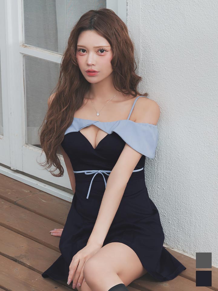 送料無料!オフショル/キャミソール/谷間見せ/ウエストリボン/無地/プリーツスカート/Aライン/ミニドレス/キャバドレス【XS-Mサイズ/2カラー】[OF03]【YN】dzwsSK