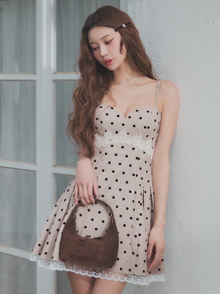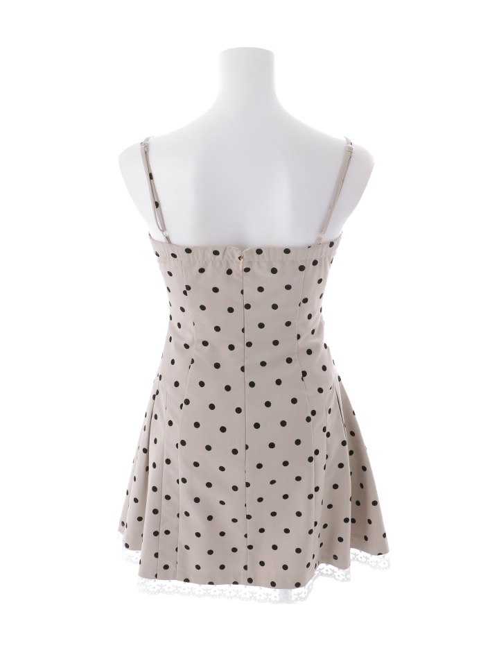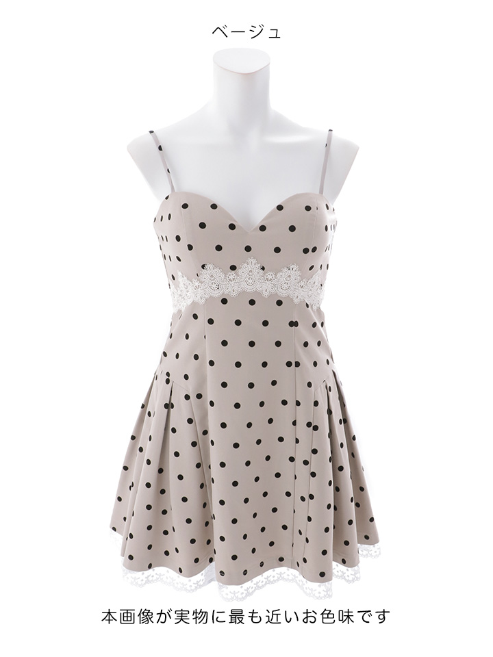 送料無料!ドット柄/キャミソール/谷間見せ/レース/スーツ生地/ドッキング/プリーツ/フレア/Aライン/ミニドレス/キャバドレス【S-Mサイズ/2カラー】【予約商品/4月下旬発送予定】[OF04]【SB】dzmuSK