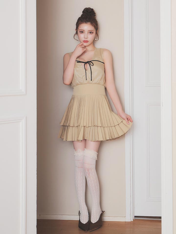 胸元には揺れるリボンをあしらい、動くたびに可憐なアクセントに。