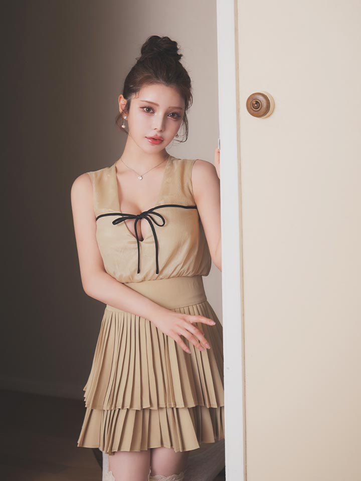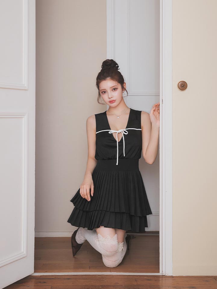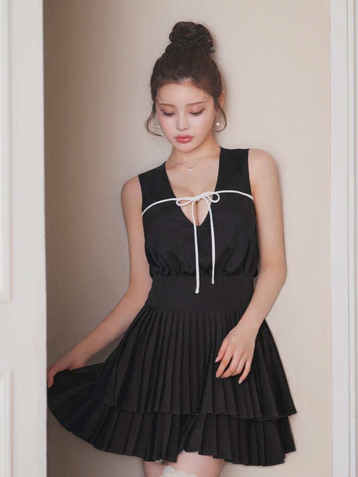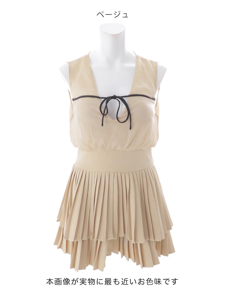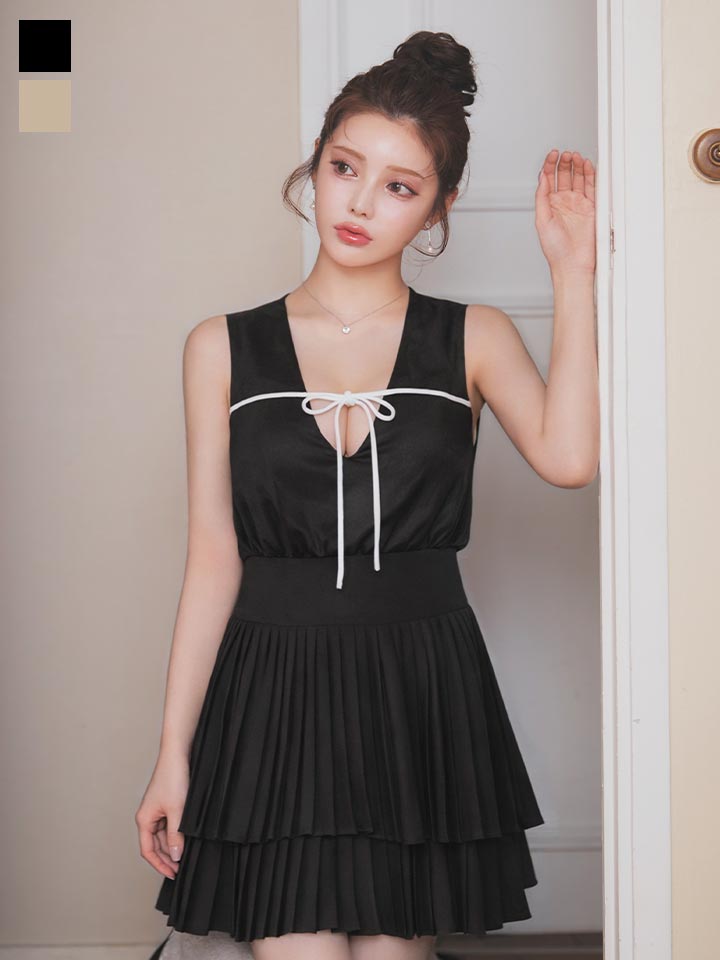 送料無料!シフォン/リボン/ノースリーブ/プリーツ/Aライン/ミニドレス/キャバドレス【XS-Mサイズ/2カラー】【予約商品/4月下旬発送予定】[OF03]【YN】dzquBF [5935YNdzquBF-260415-2]