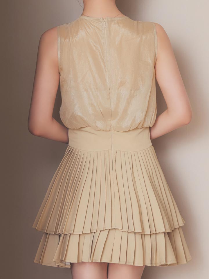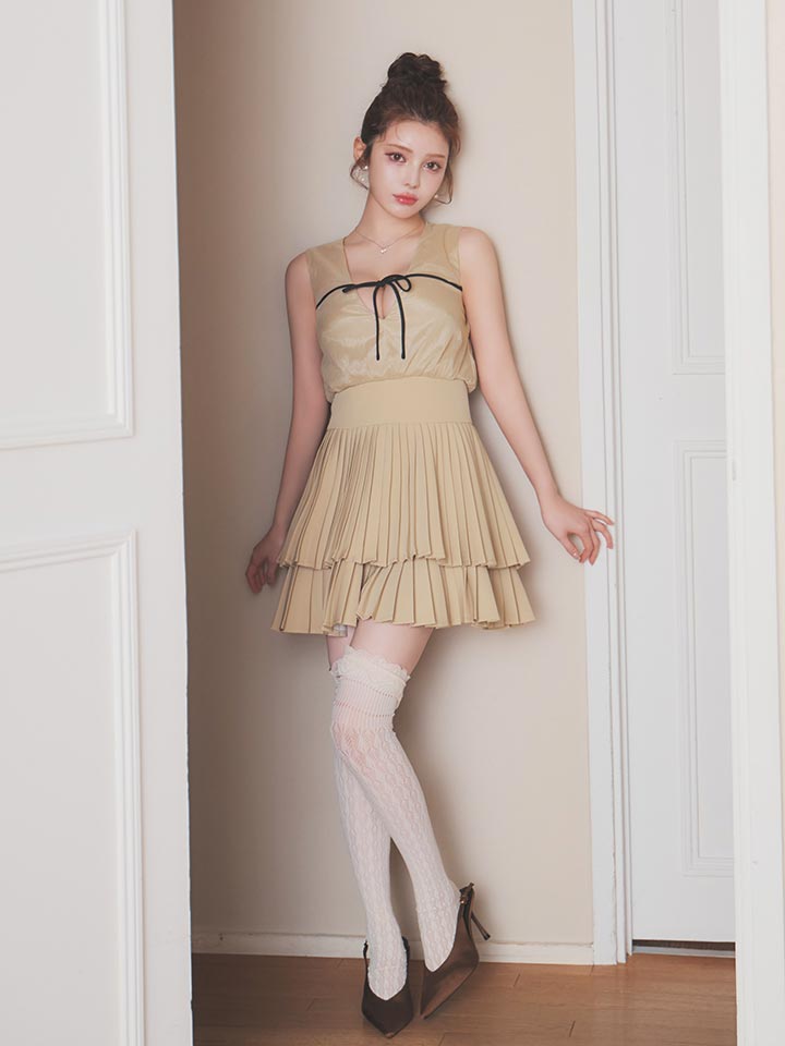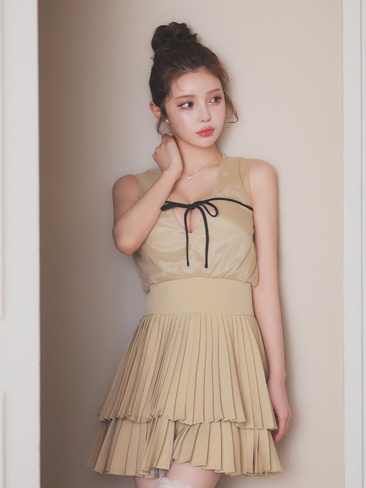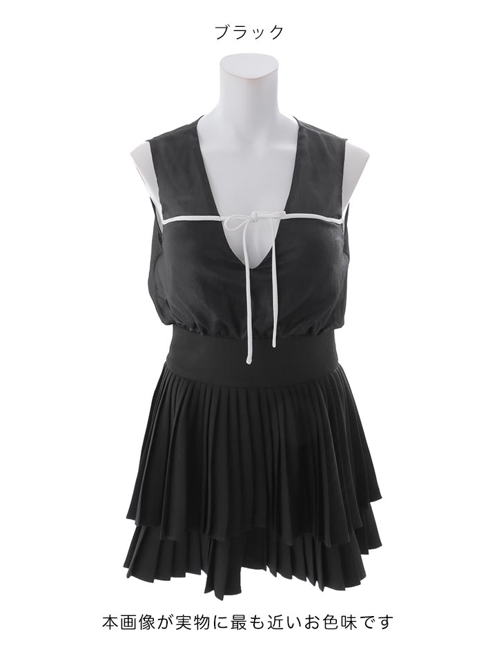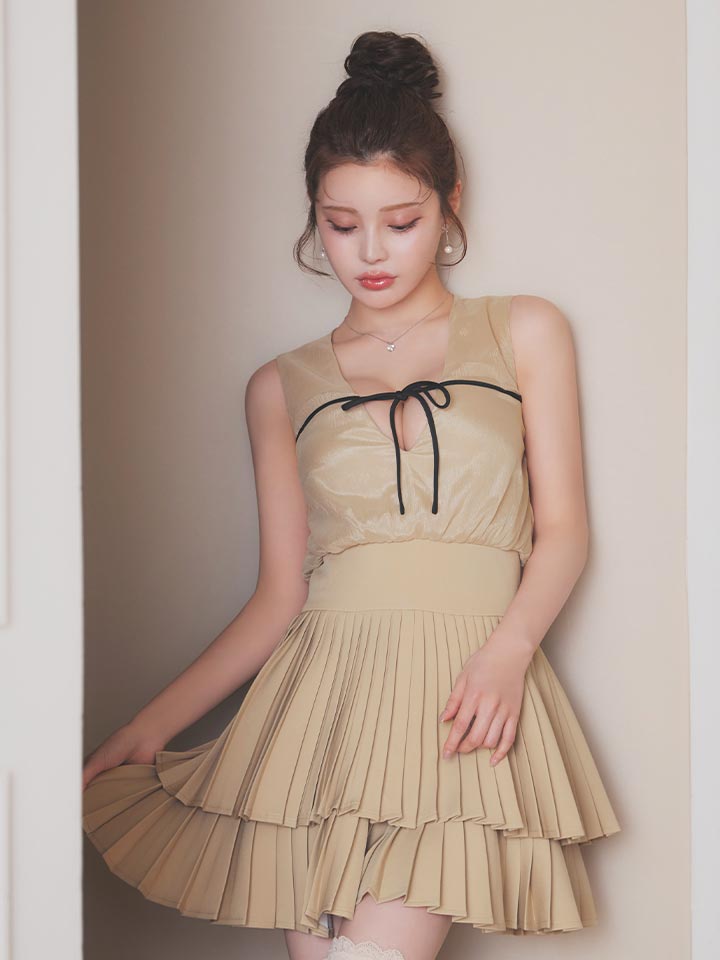 送料無料!シフォン/リボン/ノースリーブ/プリーツ/Aライン/ミニドレス/キャバドレス【XS-Mサイズ/2カラー】【予約商品/4月下旬発送予定】[OF03]【YN】dzquBF [5935YNdzquBF-260415-2]