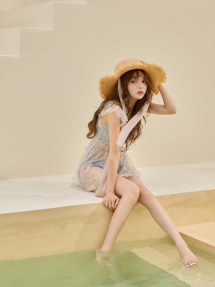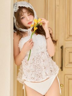 - > 【ビキニ】【水着】チュール花柄トップス付きビキニ 3点セット [FB01]【予約 / 6月上旬発送予定】