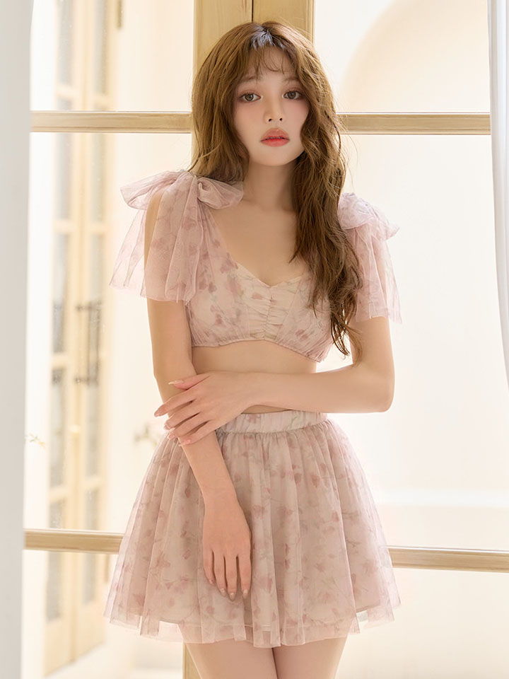 【ビキニ】【水着】フラワーモチーフシアーリボンビキニ 3点セット [FB01]【予約 / 6月上旬発送予定】