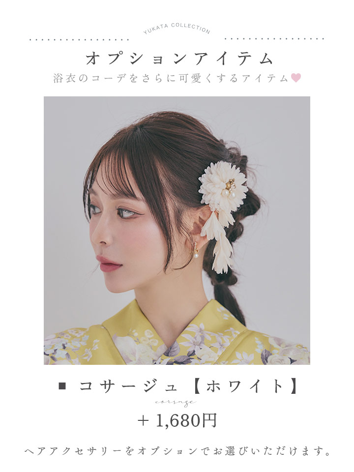 白薔薇と小花が織りなす上品な配色が、凛とした女性らしさを静かに引き立てます。