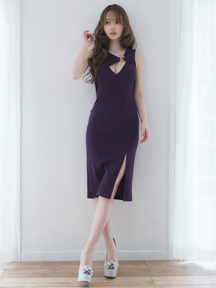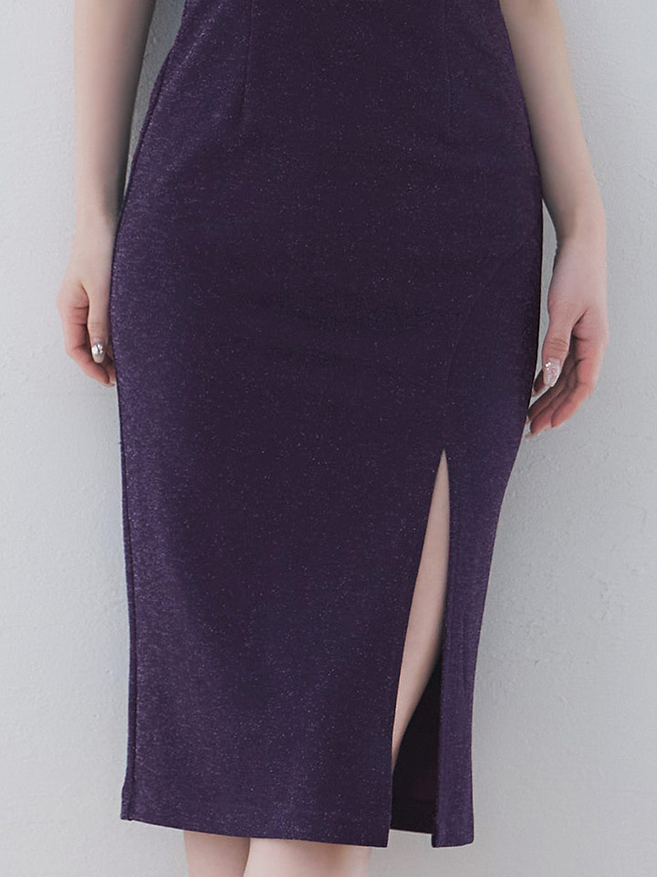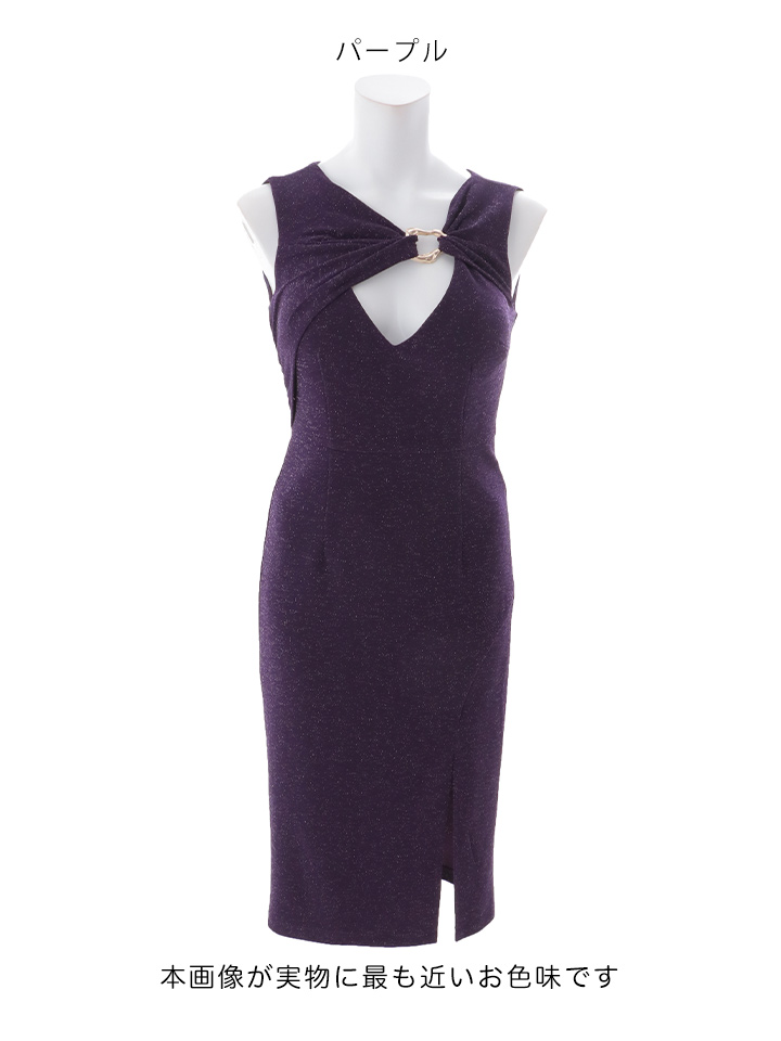 バストカット/谷間見せ/ノースリーブ/ラメ生地/ストレッチ/タイト/スリット/ミディアムドレス/キャバドレス【S-Mサイズ/2カラー】[OF03] 【YN】dzwuFV