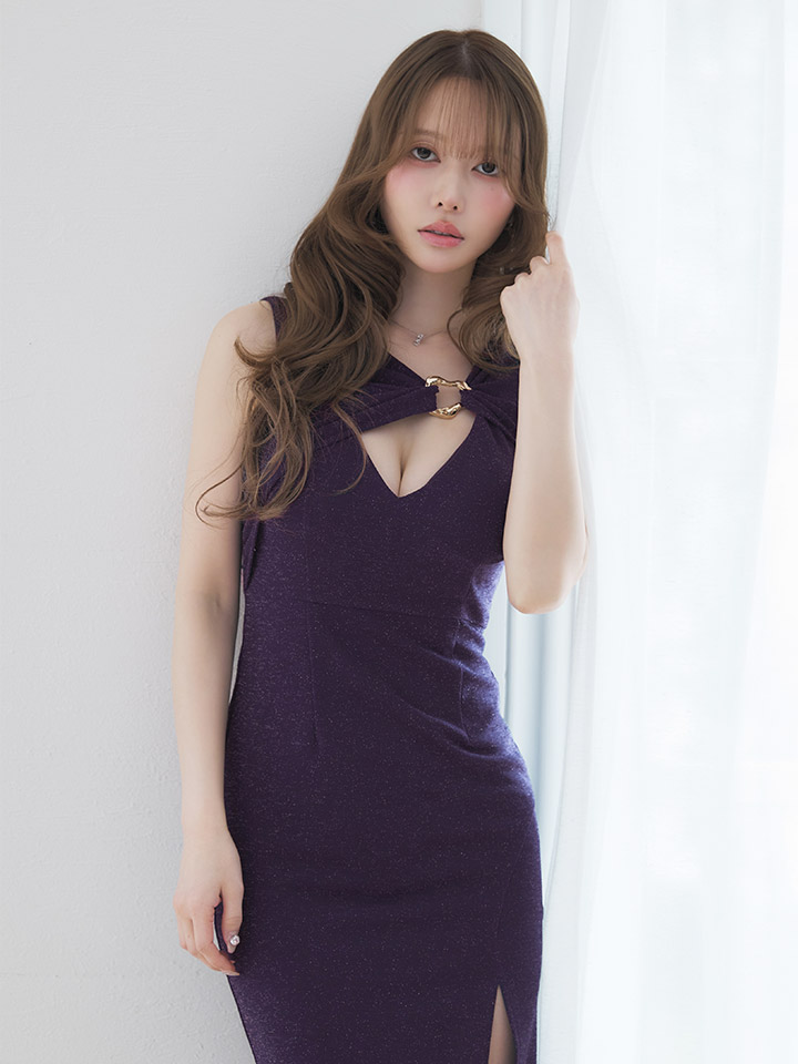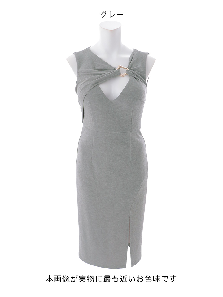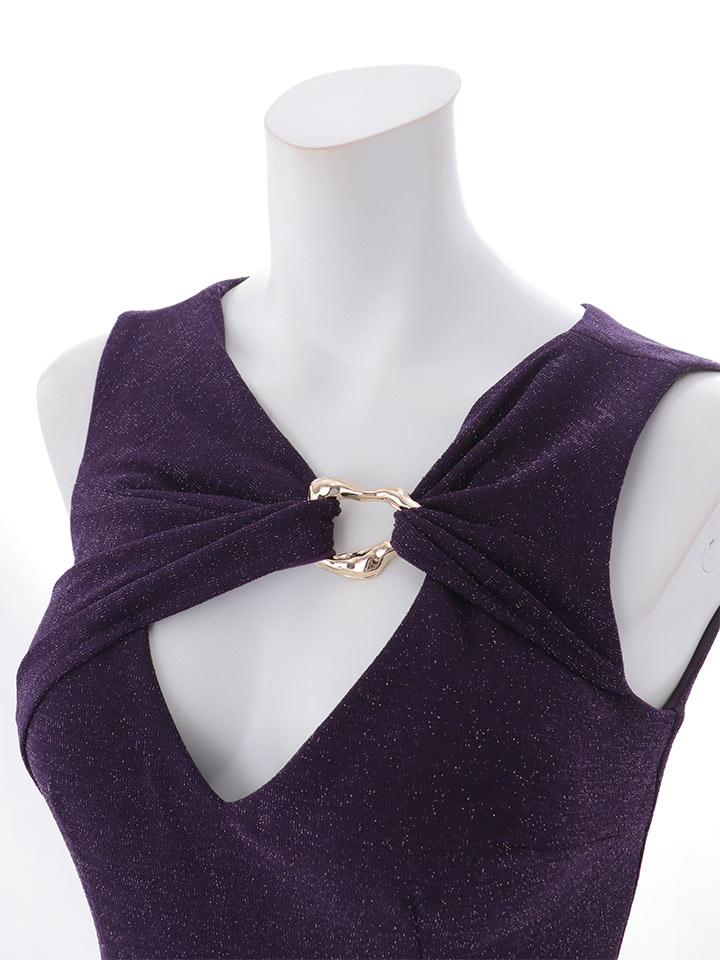 バストカット/谷間見せ/ノースリーブ/ラメ生地/ストレッチ/タイト/スリット/ミディアムドレス/キャバドレス【S-Mサイズ/2カラー】[OF03] 【YN】dzwuFV [5936YNdzwuFV-260417-2]