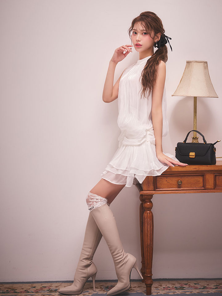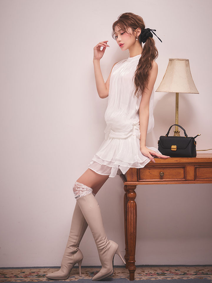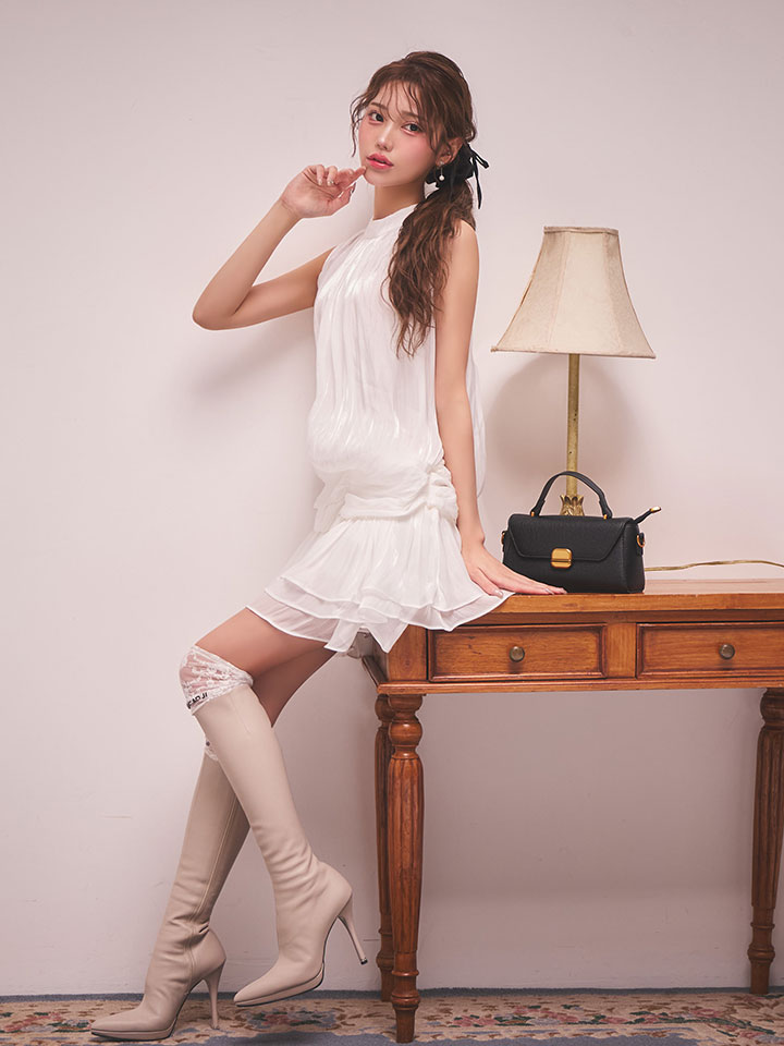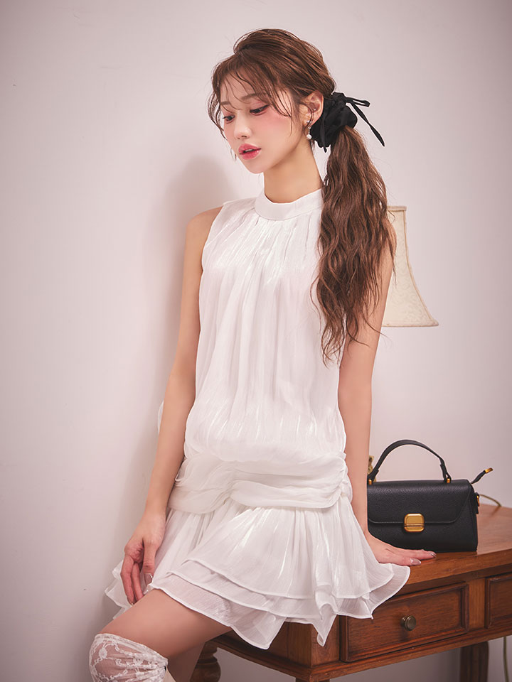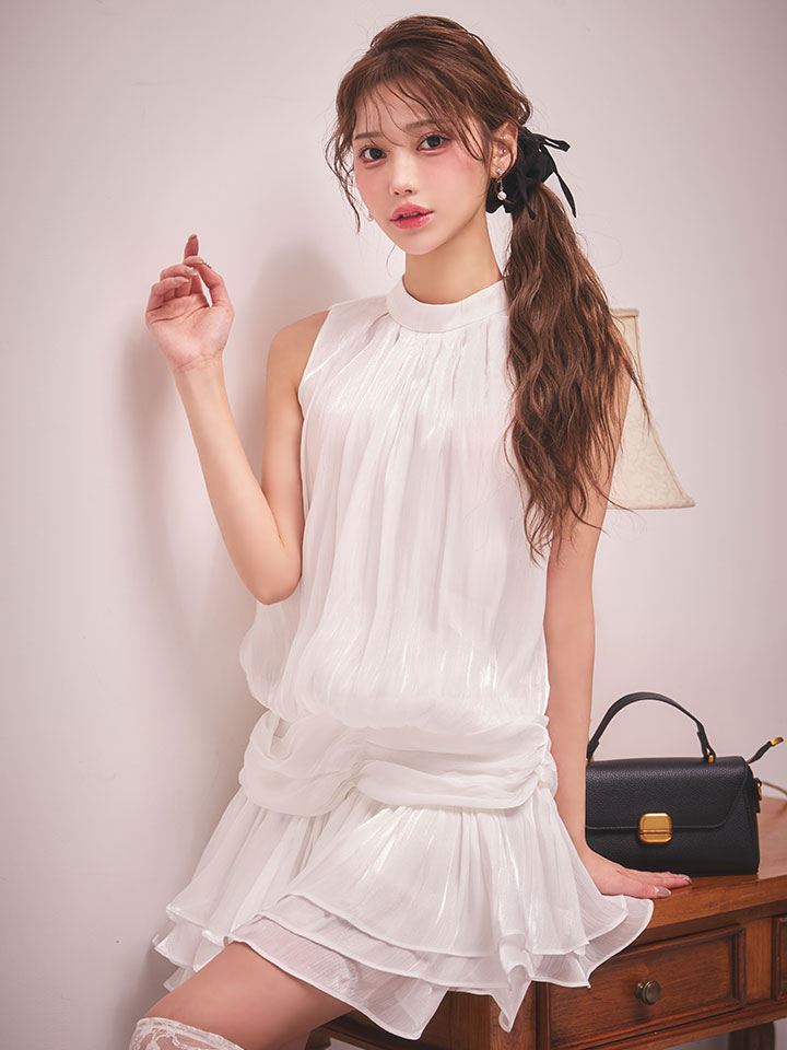 #ホワイト ##あすか着用 #ミニドレス/ミニ丈 #無地 #ハイネック #ノースリーブ #胸元隠し(胸隠し) #背中隠し(ブラOK) #スイート・可愛い(かわいい)系 #JEWELSトレンド