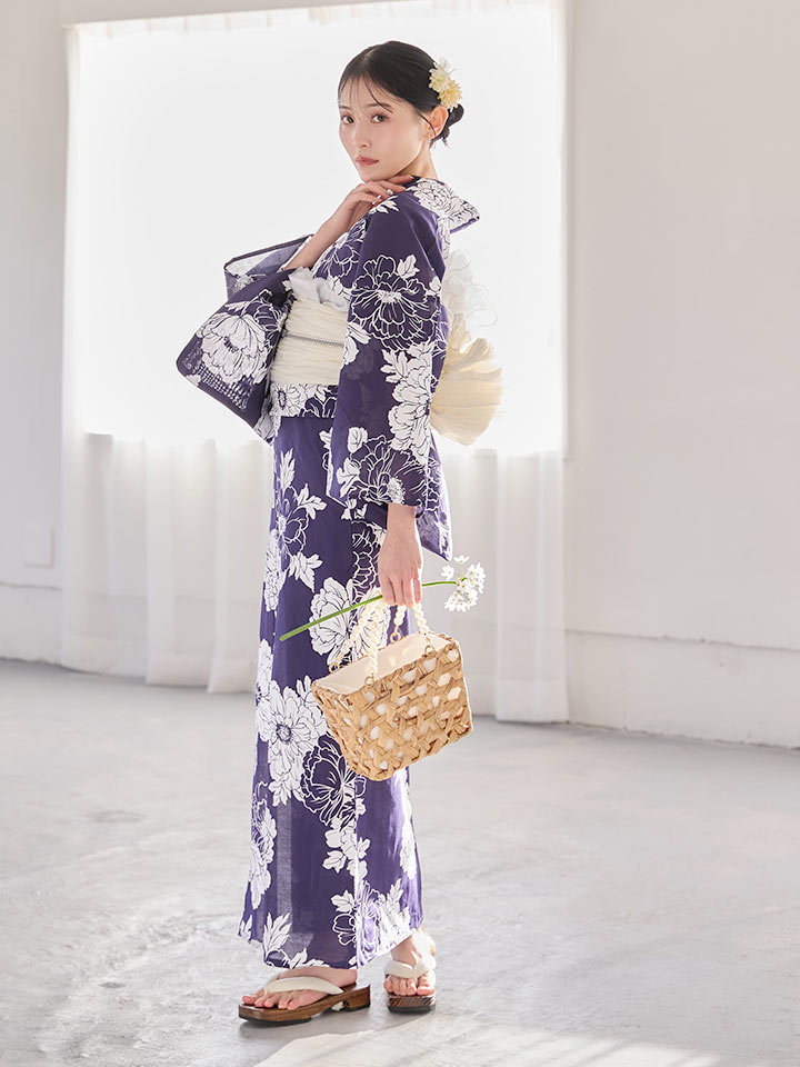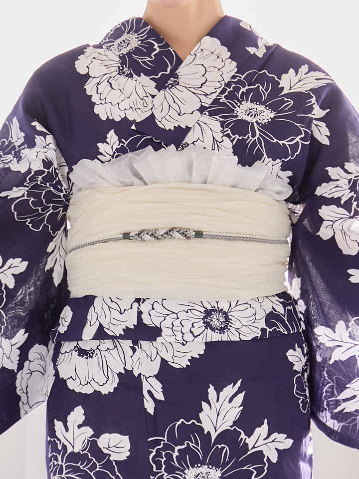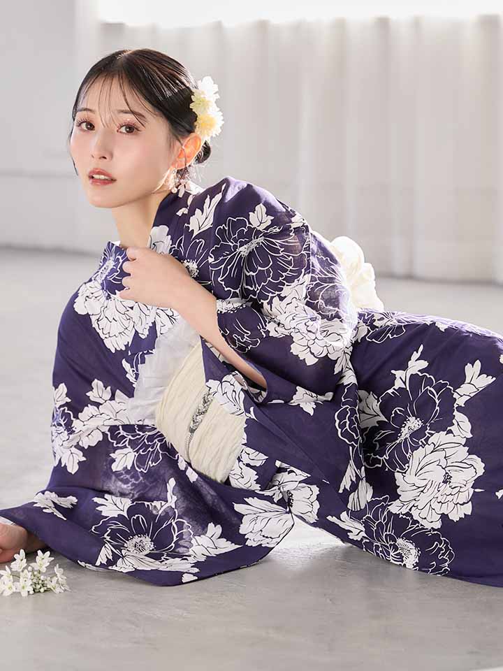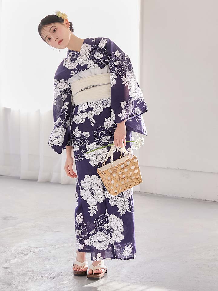 【即日発送】スタイリッシュ牡丹モダン浴衣【浴衣3点セット 浴衣/帯/下駄】[OF04] [Y-9229-kj-NV-F-26MU-260420]