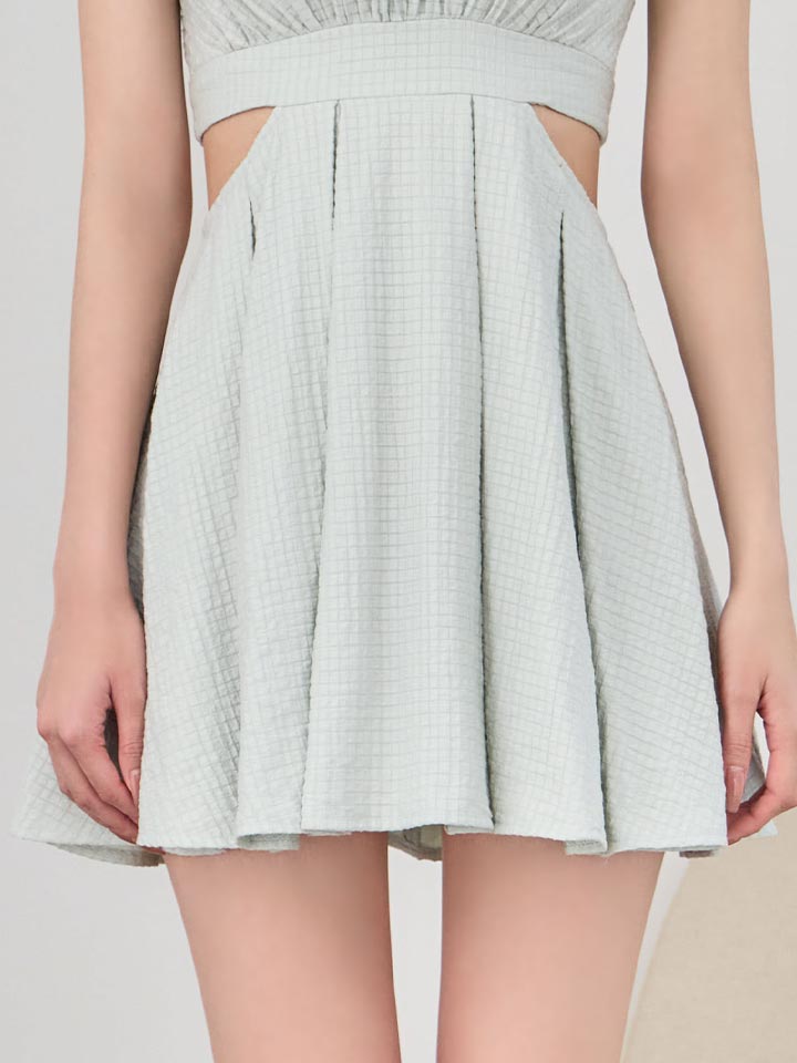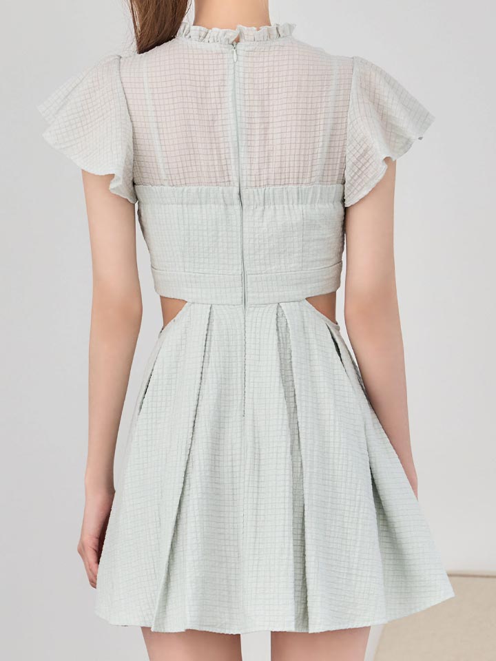 軽やかな素材感が魅力の胸とじデザインミニドレス。