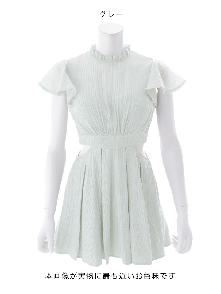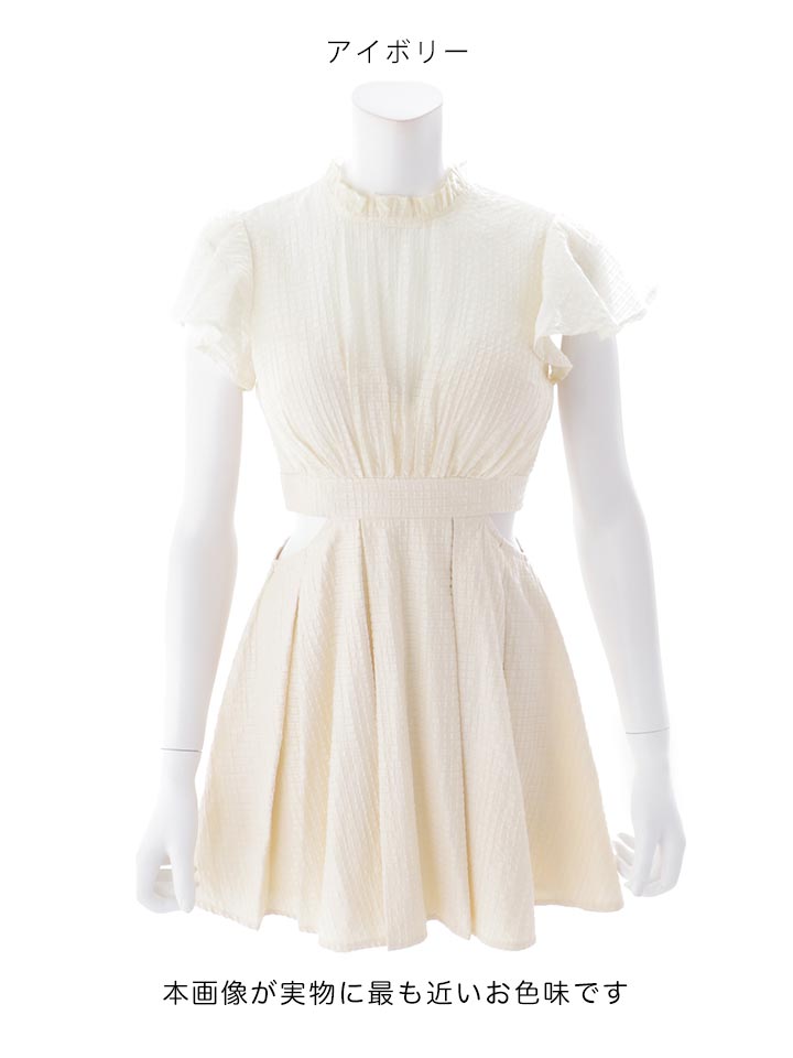送料無料!襟付き/シアー/ハイネック/ウエストカット/ギャザー/シフォン/ワッフル生地/プリーツスカート/Aライン/ミニドレス/キャバドレス【XS-Lサイズ/2カラー】[OF03]【YN】dzmvIA