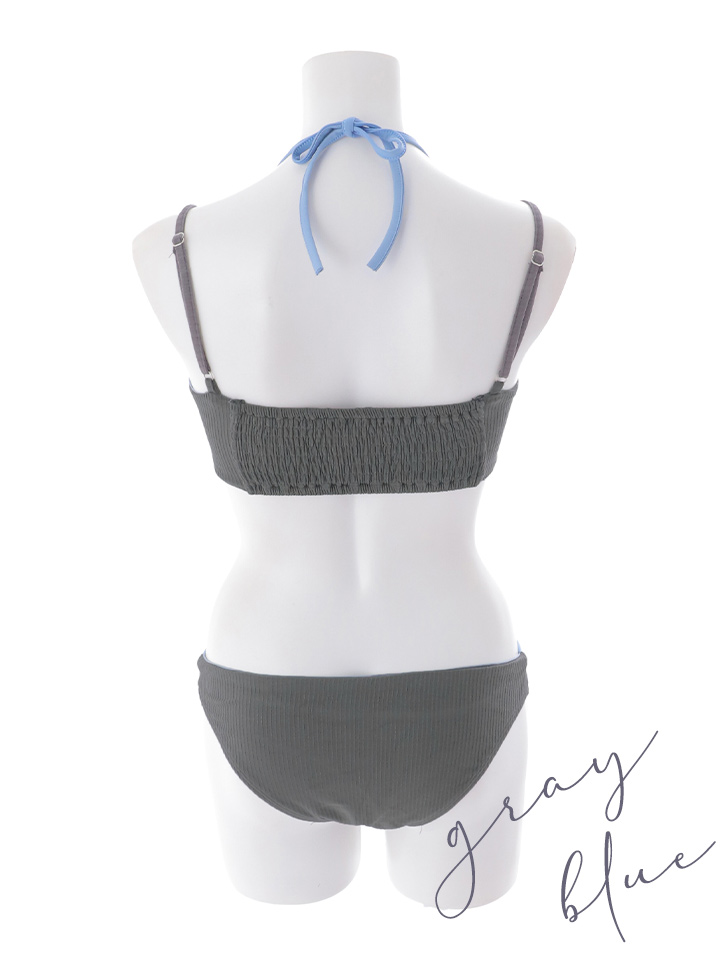 トレンド感あふれるバイカラーデザインで、一目で印象に残るトップスが主役の水着。