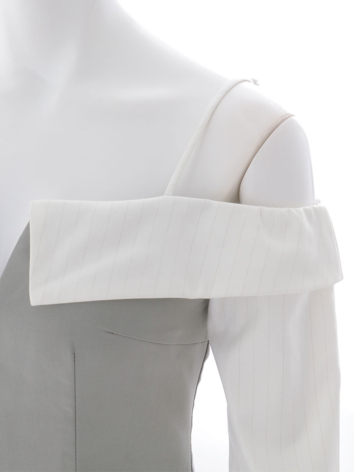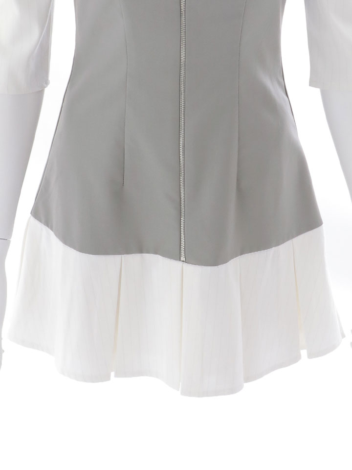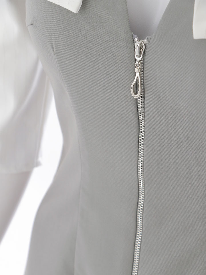 胸元のファスナーは開閉できる仕様で、谷間見せのセクシーな着こなしから上品な着こなしまで調整可能です。