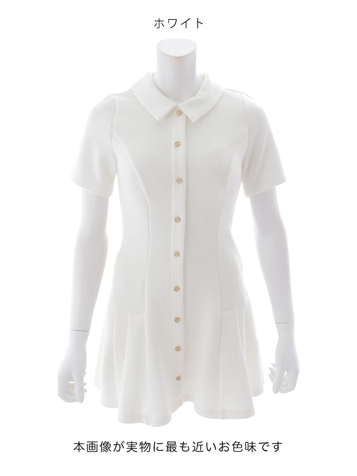襟付き/半袖/ボタン/ワッフル/プリーツ/ミニドレス/キャバドレス【XS-Mサイズ/1カラー】[OF03]【IM】dzmgIA