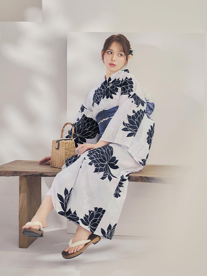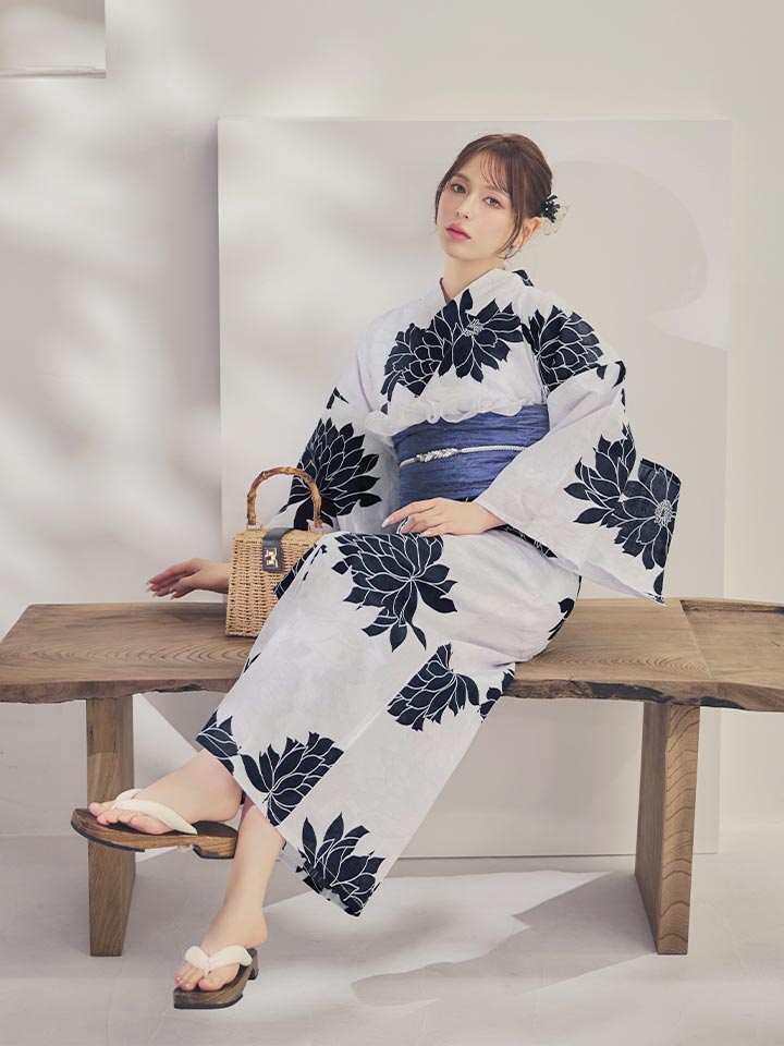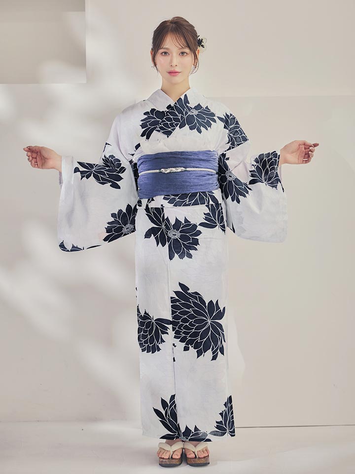送料無料!【即日発送】モノトーンダリア柄浴衣【浴衣3点セット 浴衣/帯/下駄】[OF04] [Y-9144-wk-W-F-26IE-260427]