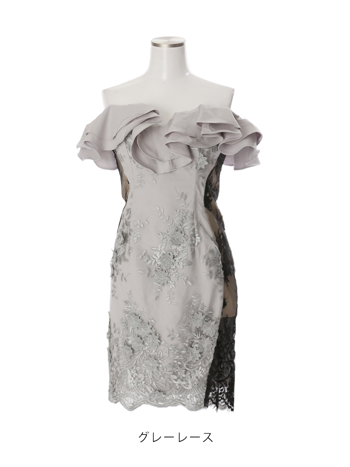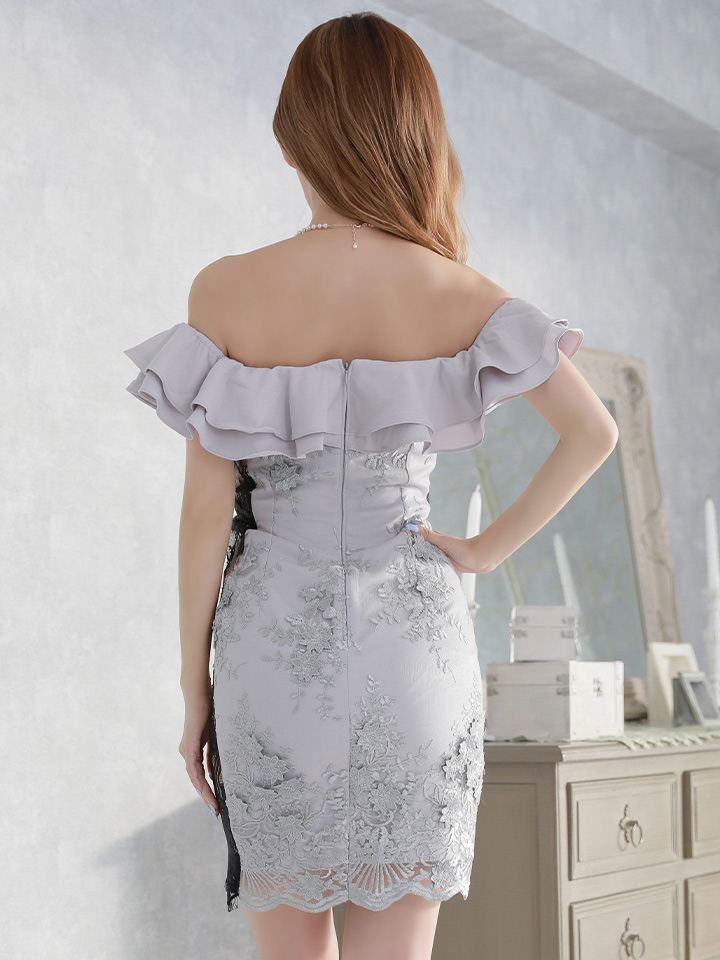 SALE!サイドブラックシアードレス/オフショルダー/フリル/レース/キャバドレス/ミニドレス【S-Lサイズ/カラー】[OF01-X]【SB】 [8025SB-2006-1]