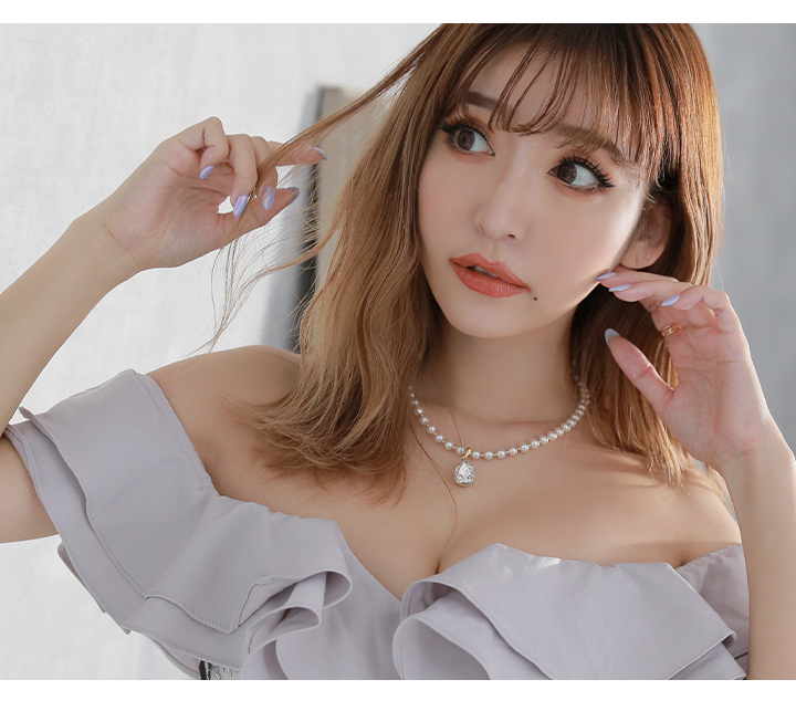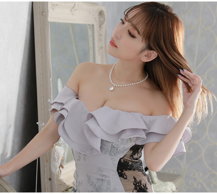・ビックフリルのオフショルダーデザインで綺麗に谷間魅せ。