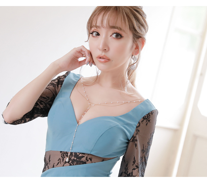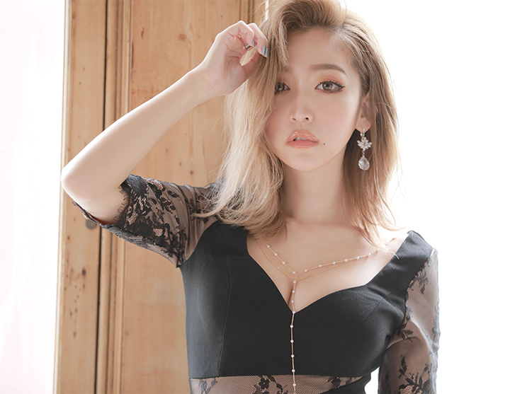 SALE!フェイクレーススリットドレス/カットワークレース/ドレープ/谷間魅せ/キャバドレス/ミニドレス【XS-XLサイズ/2カラー】[OF03]【YN】dz [4181YNdzw-2007-2]