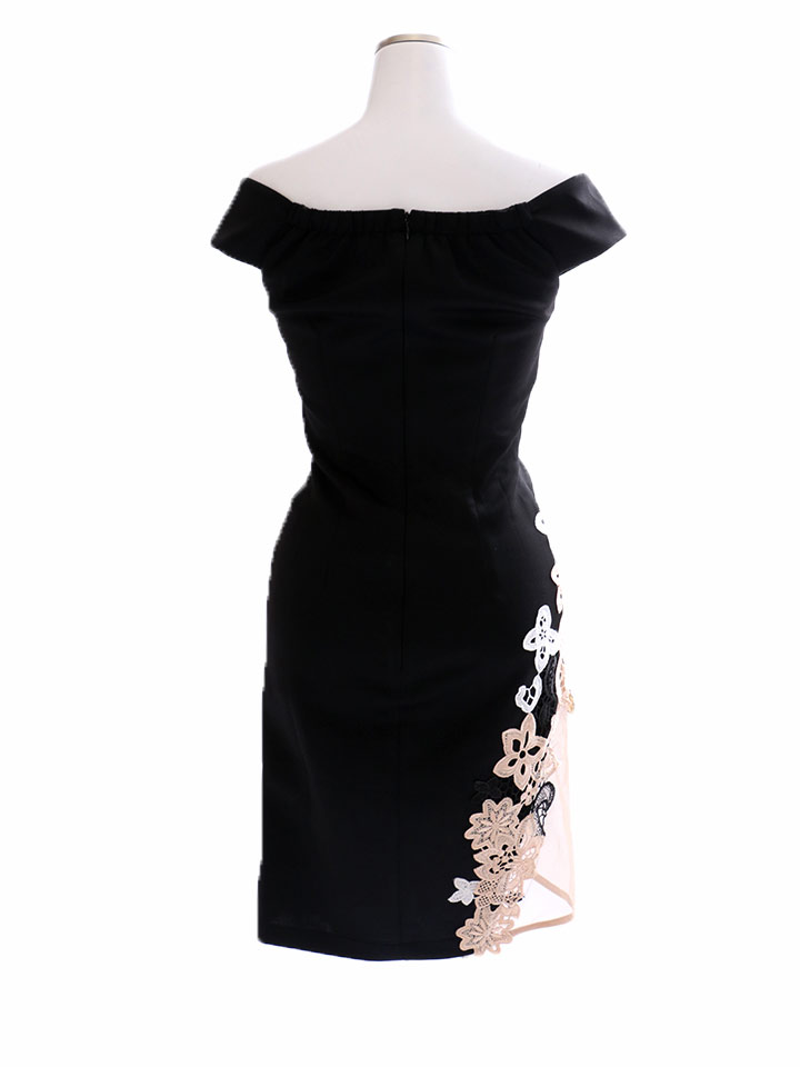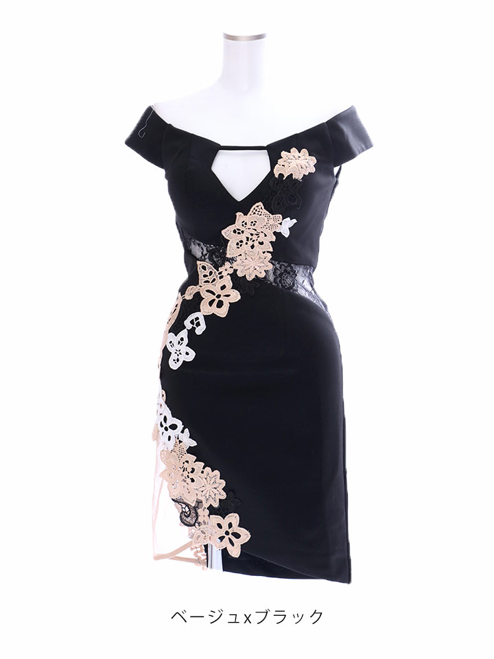 SALE!マーベラスブラックフロントオープンドレス/エンブロイダリーレース/シアー切り替え/デコルテ見せ/キャバドレス/ミニドレス【S-Mサイズ/1カラー】[OF03-U] [4227YNdzw-2011-1]