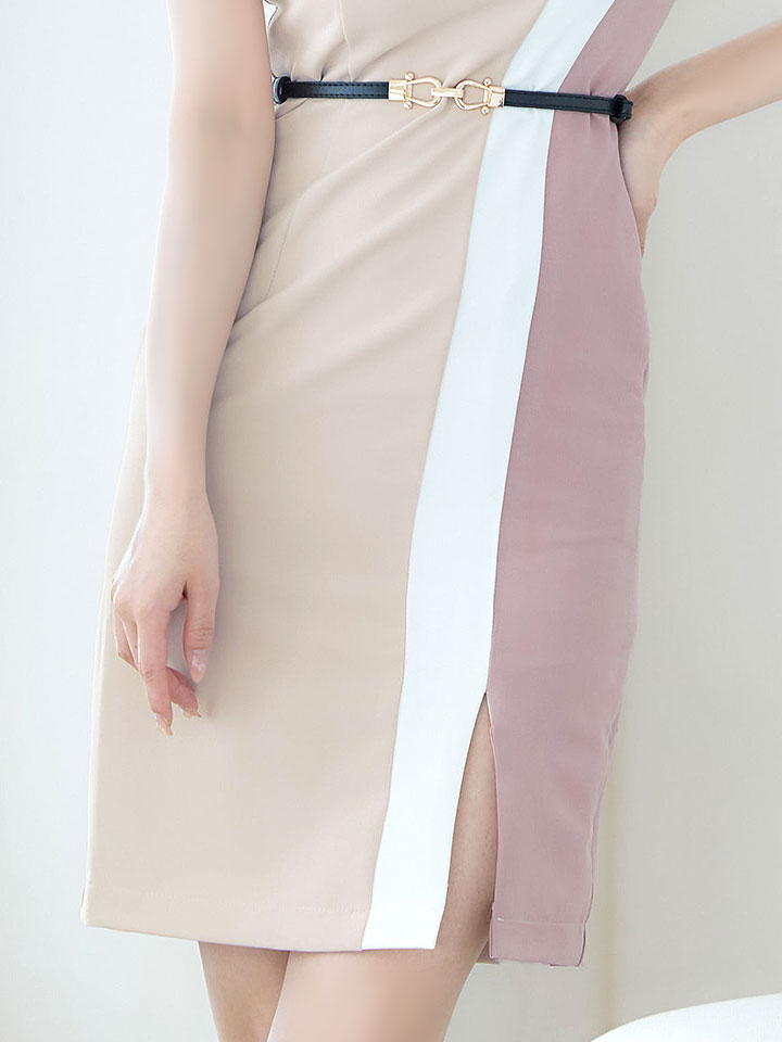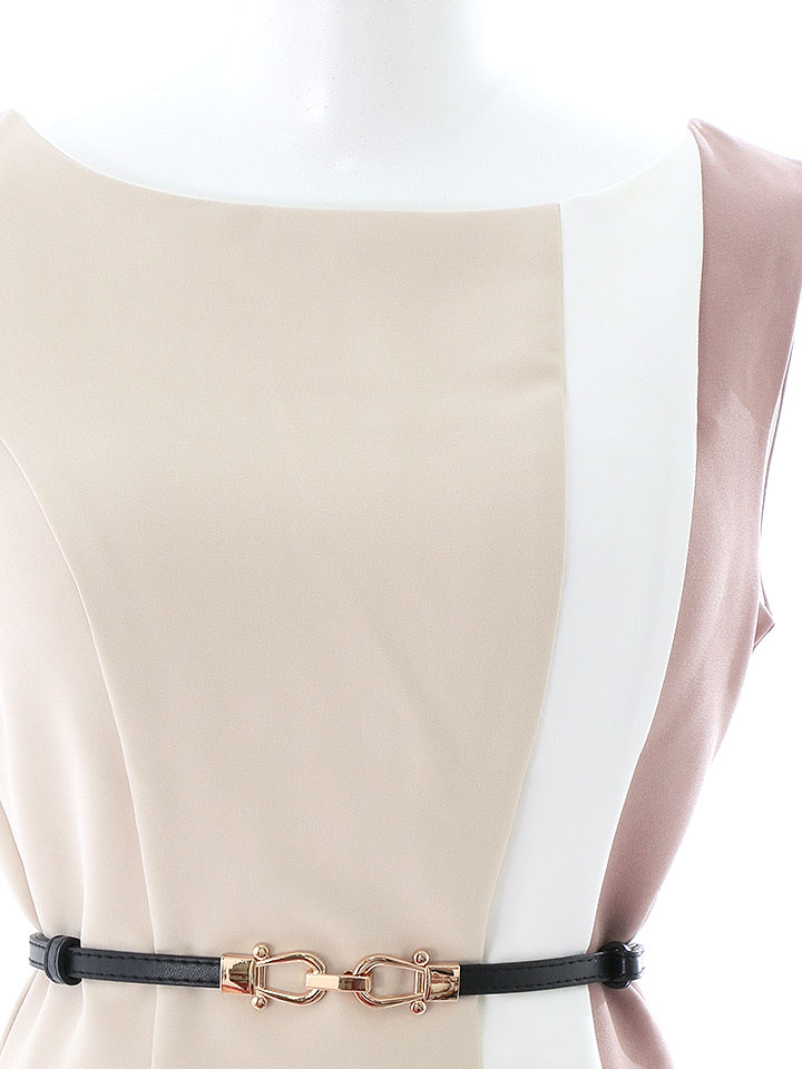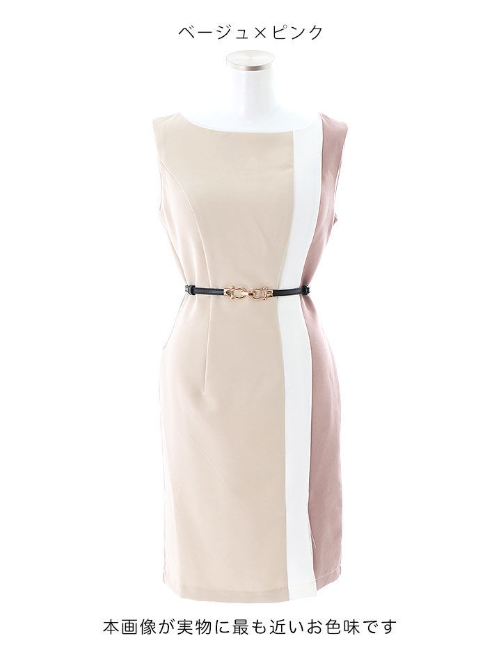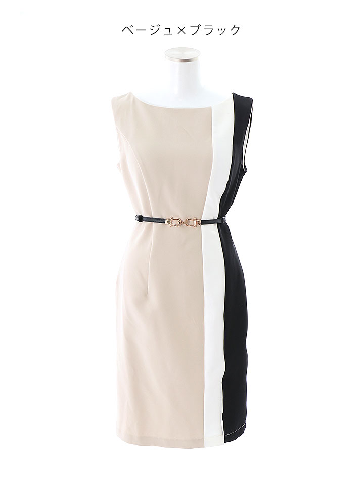 SALE!トリコロールカラーノースリーブドレス/無地/ノースリーブ/ベルト/胸元隠し/背中隠し/タイト/ミディアム/キャバドレス/ミニドレス【S-Lサイズ/2カラー】[OF01] 【SB】dzw [7638SBdzw-2205-1]