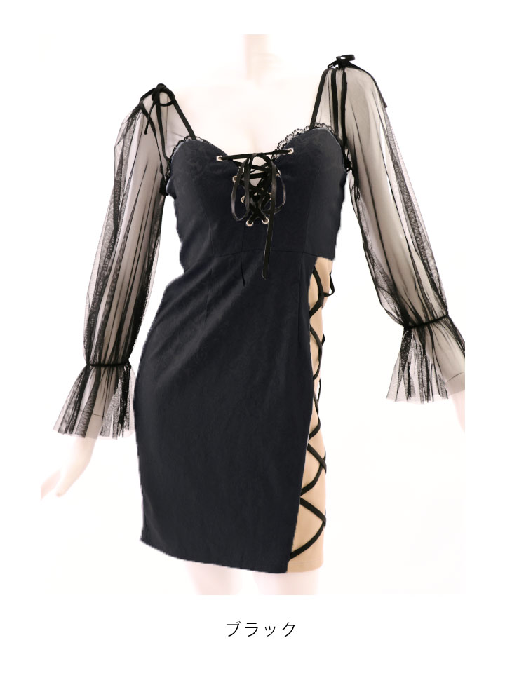 サイドシアーレイヤードドレス/シアー/谷間見せ/タイト/キャバドレス/ミニドレス【S-Lサイズ/2カラー】[OF03-U]【YN】dzj [4299YNdzj-2203-1]