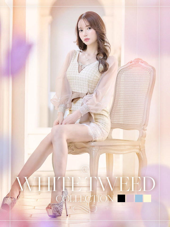 ピュアな清楚さを感じさせるホワイトツィードドレスに新色が登場