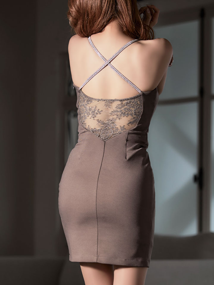 SALE!ワンカラーバックレースミニドレス/無地/ノースリーブ/キャミソール/ビジュー/レース/スリット/谷間見せ/背中見せ/タイト/ミニドレス/キャバドレス【S-Lサイズ/3カラー】[HC02] 【YN】dzj [4710YNdzj-2209-1]