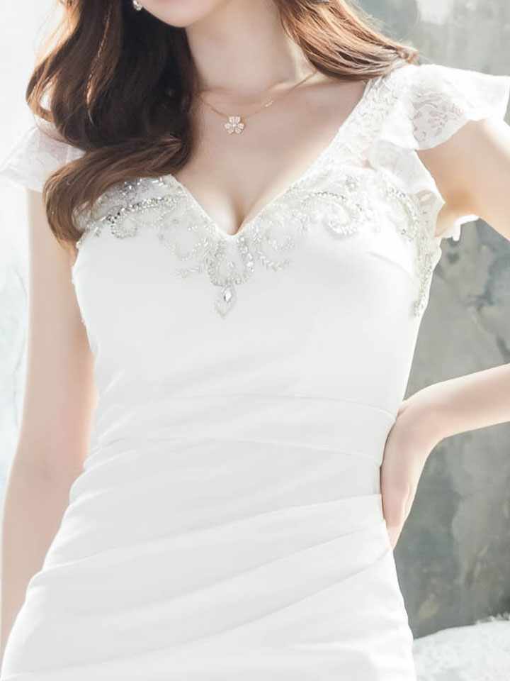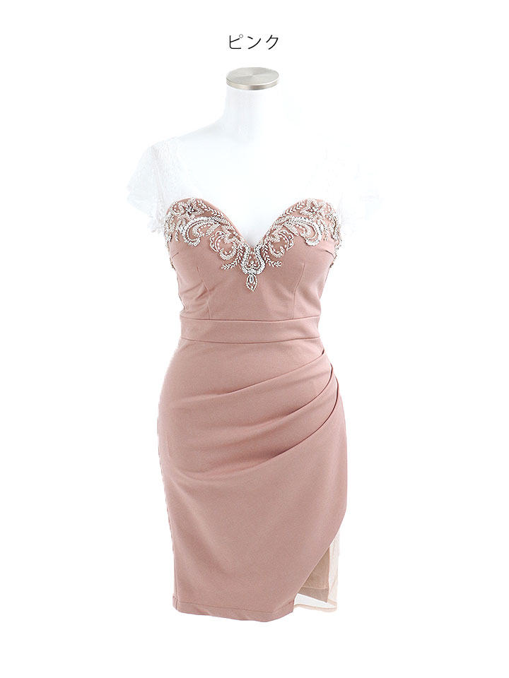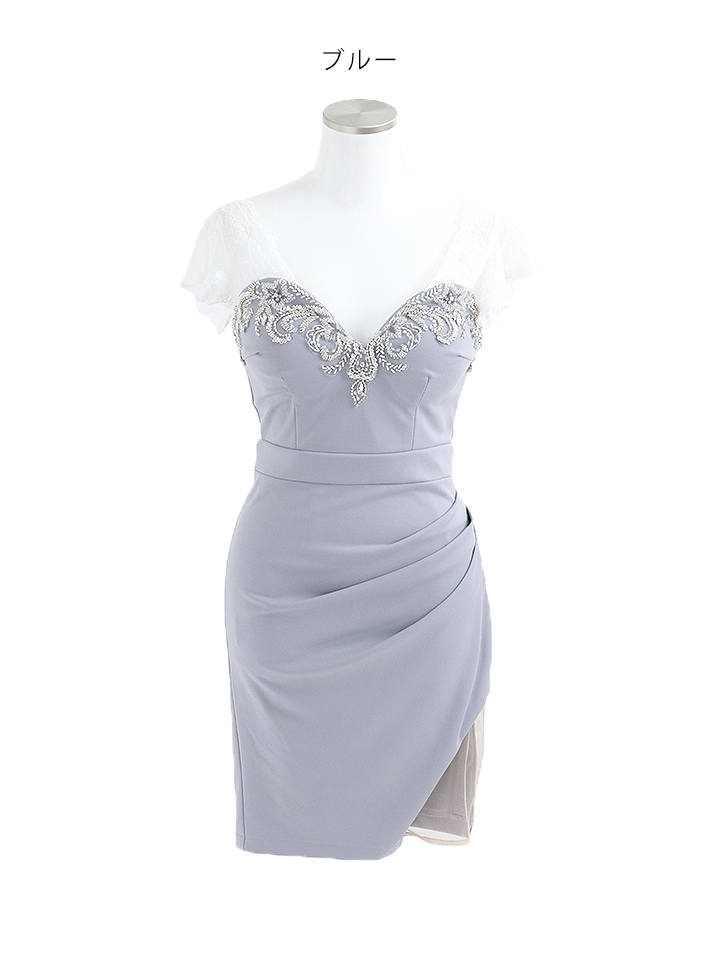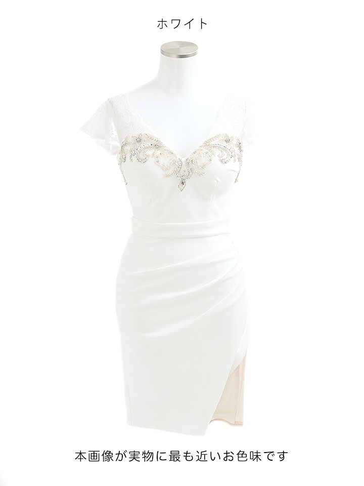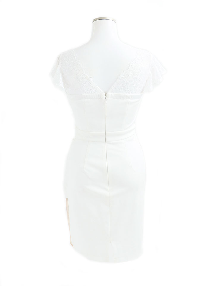 SALE!レースフリルスリーブ/胸元見せ/タックスカート/タイト/ビジュー/背中見せ/ミニドレス /キャバドレス【S-Lサイズ/3カラー】[OF03-U] 【YN】dzk [4581YNdzk-2207-1]
