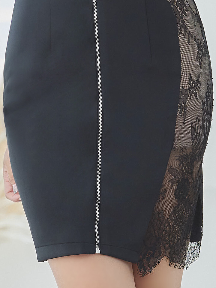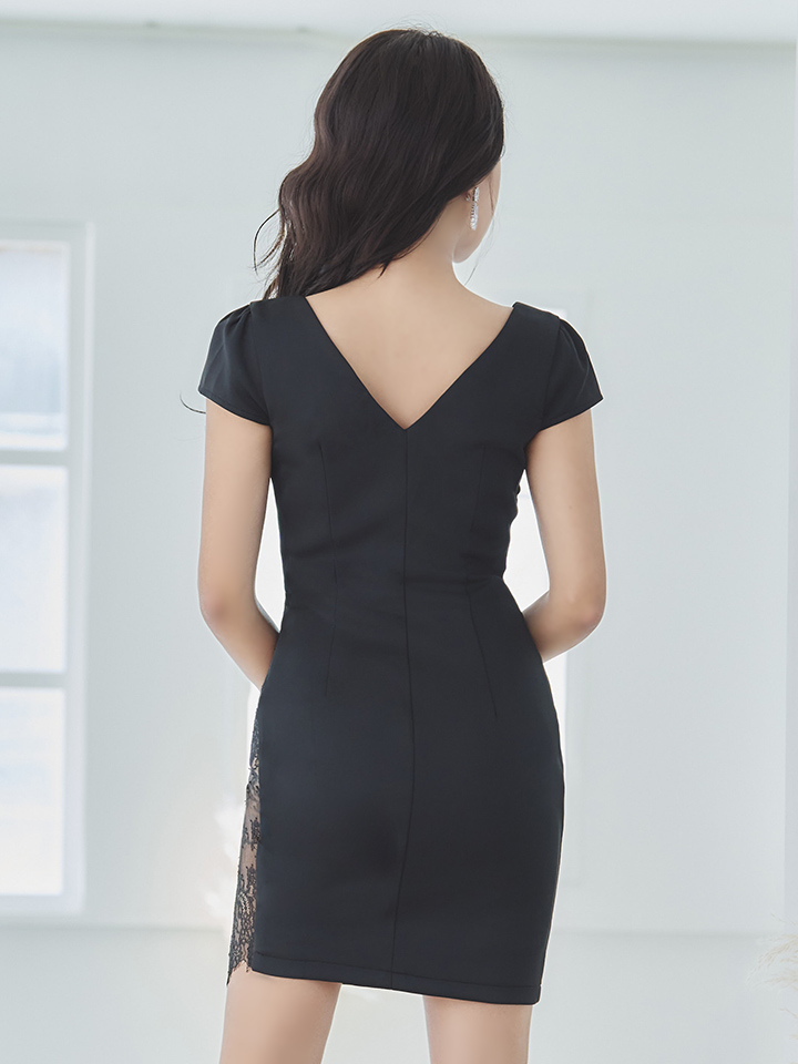 フェイクレーススリットドレス/レースレイヤード/カットワークレース/タイト/谷間魅せ/キャバドレス/ミニドレス【S-Lサイズ/2カラー】[OF03-X] [4312YNdzw-2209-1]