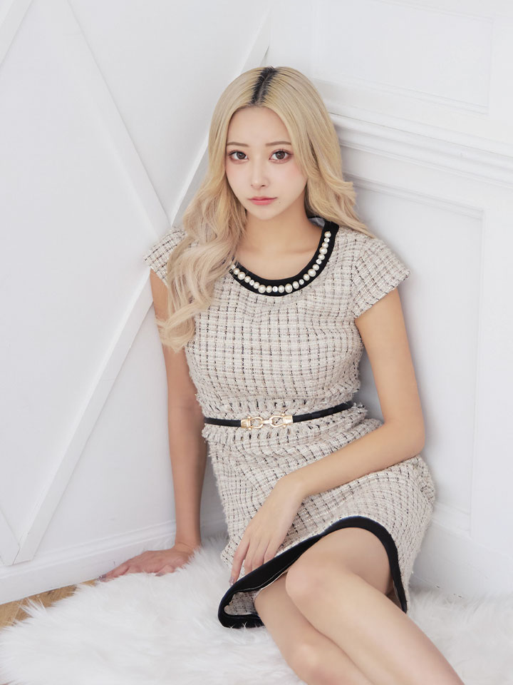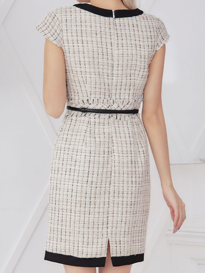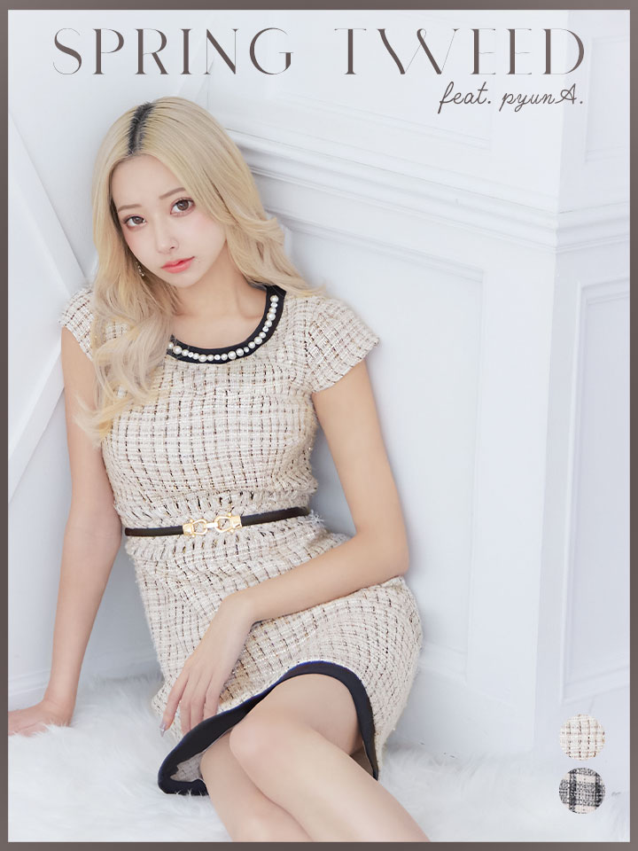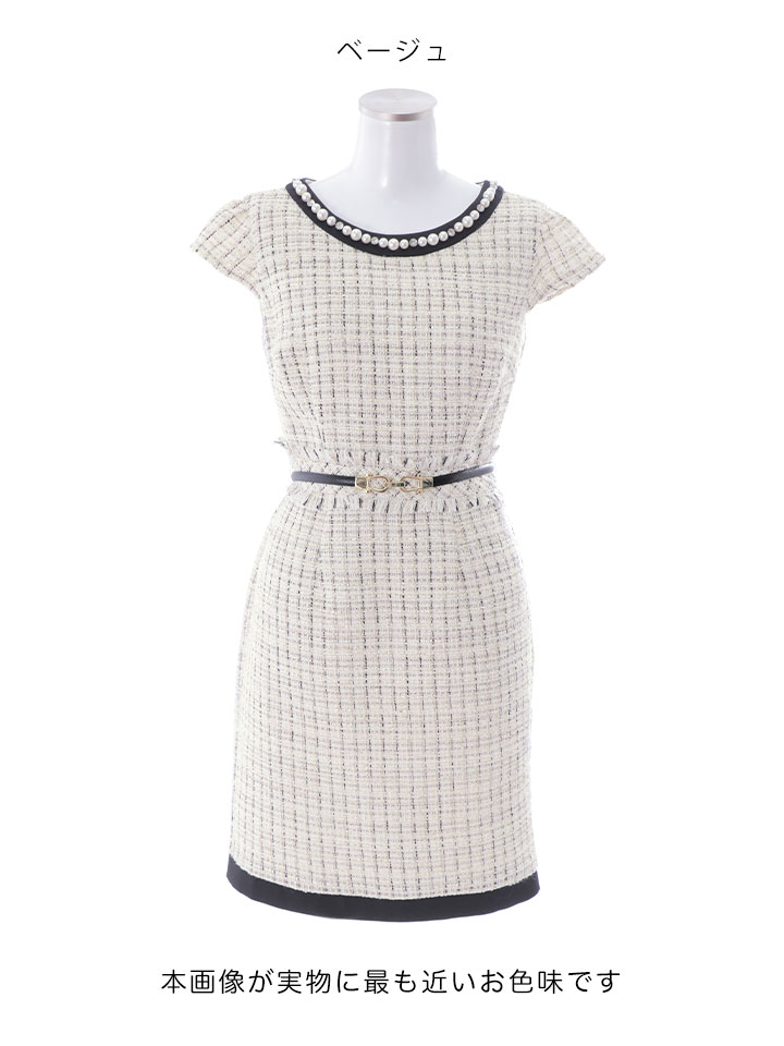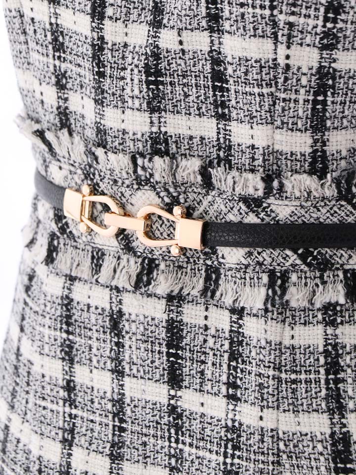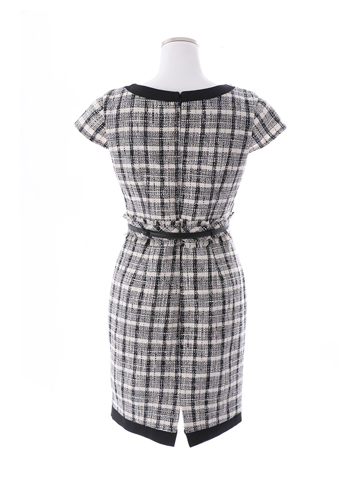 SALE!チェック柄ツイードミニドレス/黒ベルト/ビジュー/ツイード/タイトスカート/胸元隠し/背中隠し/キャバドレス/パッド無し/ワンピース/ミニドレス【S-XLサイズ/1カラー】[OF03-X] 【YN】dzc [4489YNdzc-2211-1]