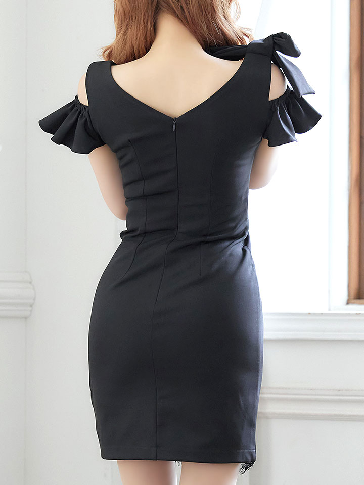 SALE!ノースリーブ/谷間見せ/レースアップ/オープンショルダー/タイトスカート/刺繍/レース/フリル/ミニドレス/キャバドレス【S-Lサイズ/2カラー】[OF01-U] 【SB】dzj [7487SBdzj-2211-1]