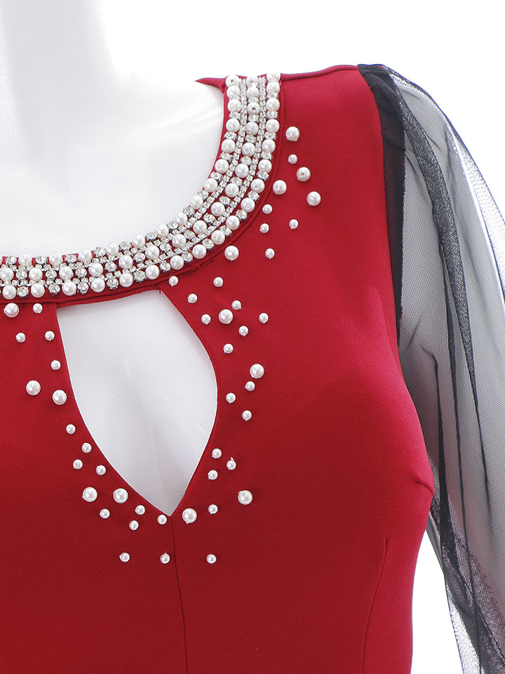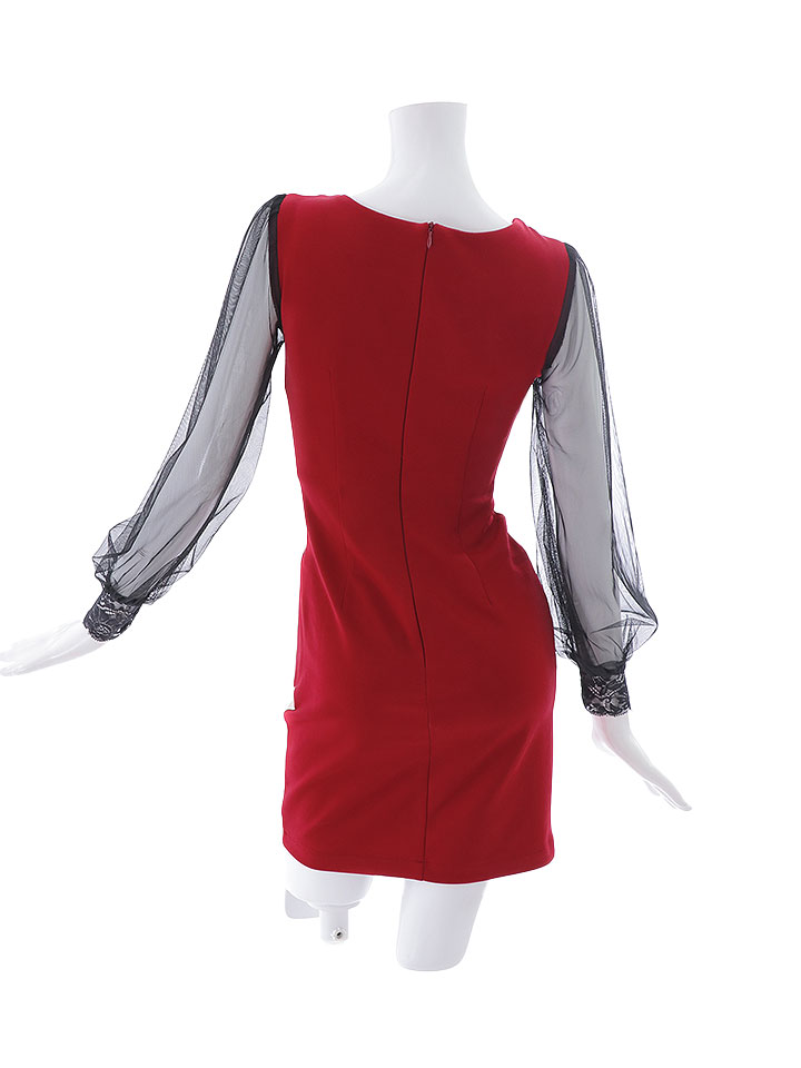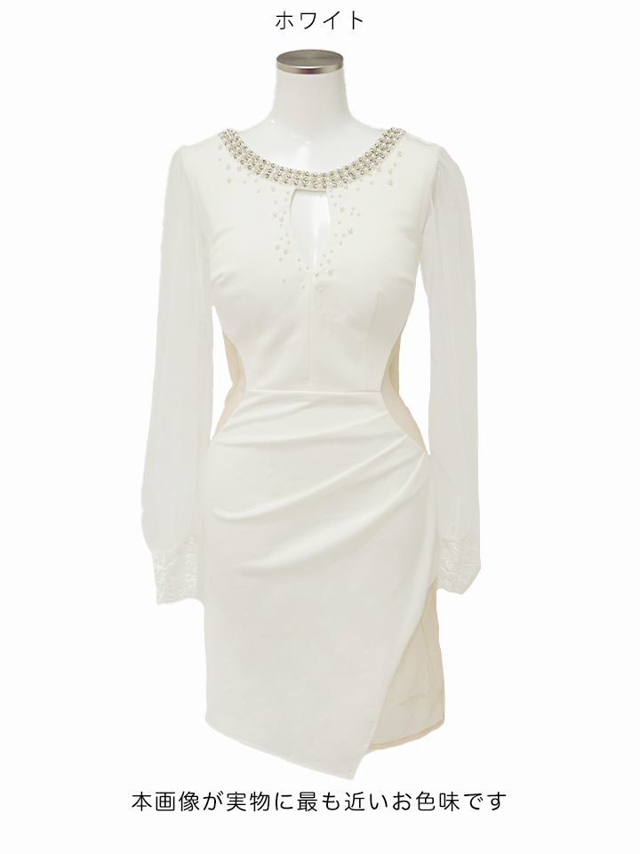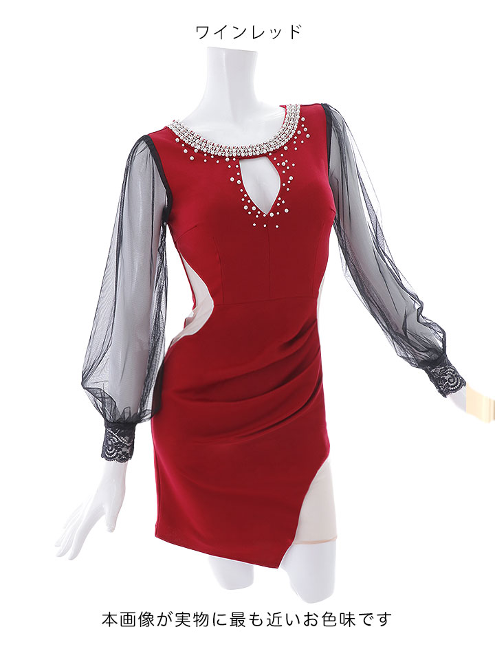SALE!チュールスリーブドレス/ビジュー/谷間見せ/ミニドレス/キャバドレス【S-XLサイズ/2カラー】[OF03-X]【YN】dzw [4725YNdzw-231108-1]