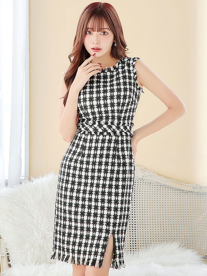 SALE!ツイードノースリーブワンピースドレス/チェック柄/ツイード/ノースリーブ/胸元隠し/背中隠し/ミディアム丈/タイト/キャバドレス/ミニドレス【S-Lサイズ/3カラー】[OF03] 【YN】dz [4510YNdzw-231215-1]
