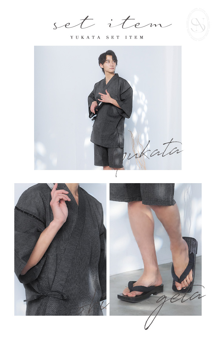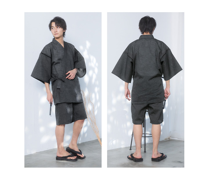 【即日発送】【メンズ甚平】ダークグレー甚平【甚平・下駄セット】[OF04] [MSJ-005-kj-B-24ON]