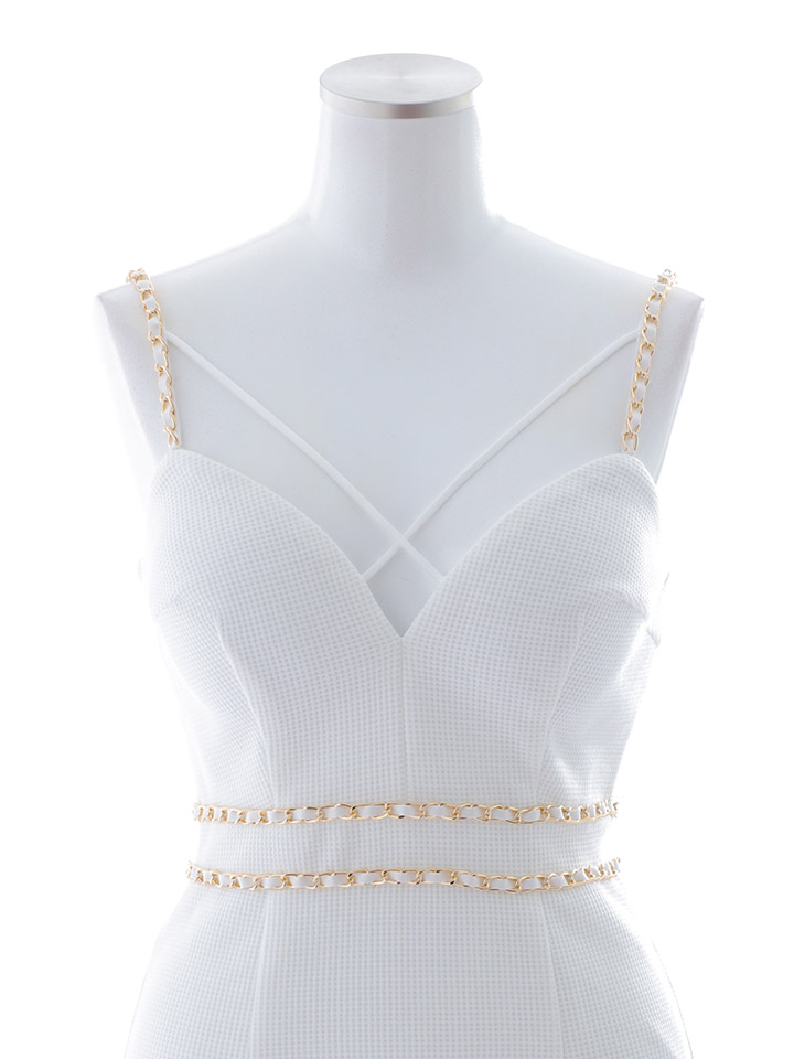 キャミソールドレス/チェーン/ワッフル/谷間見せ/背中見せ/タイト/ミニドレス/キャバドレス【S-Mサイズ/2カラー】[OF03] 【YN】dzy [5096YNdzy-240422-1]