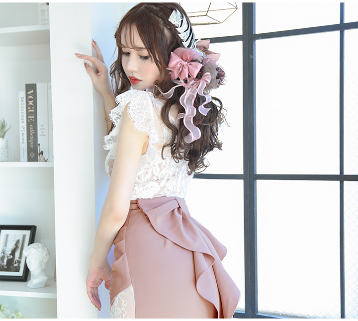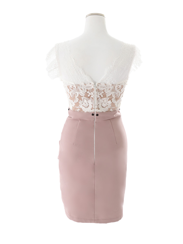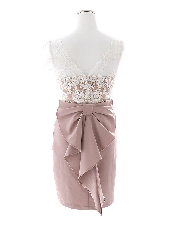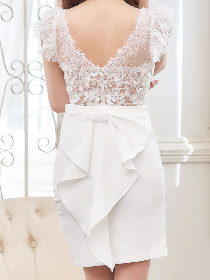 SALE!花柄刺繍レースバックリボンドレス/レース/刺繍/バックリボン/透け/谷間見せ/タイト/ミニドレス/キャバドレス【S-Lサイズ/2カラー】[OF03-U] 【YN】dzw [4520YNdzw-240611-1]