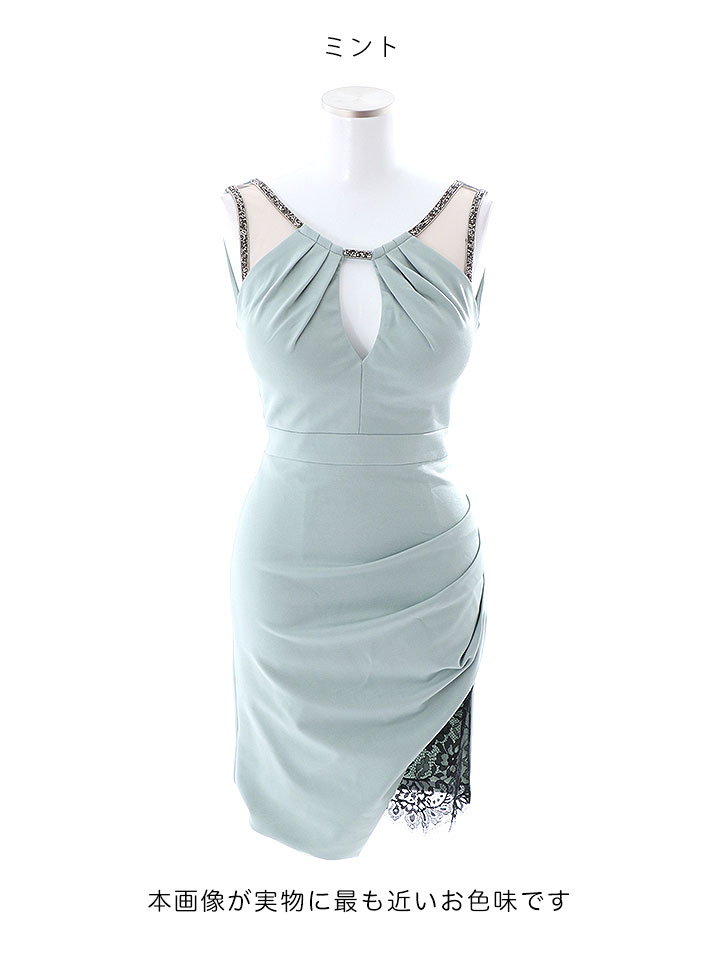 SALE!ビジュー/スリットレース/タイト/谷間見せ/透け/背中見せ/ノースリーブ/ミニドレス/ キャバドレス【S-Mサイズ/7カラー】[OF03-X] 【YN】dzw [4369YNdzw-240625-1]
