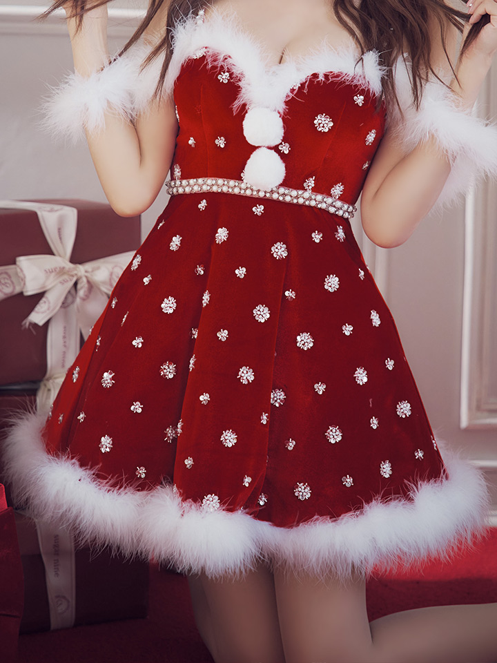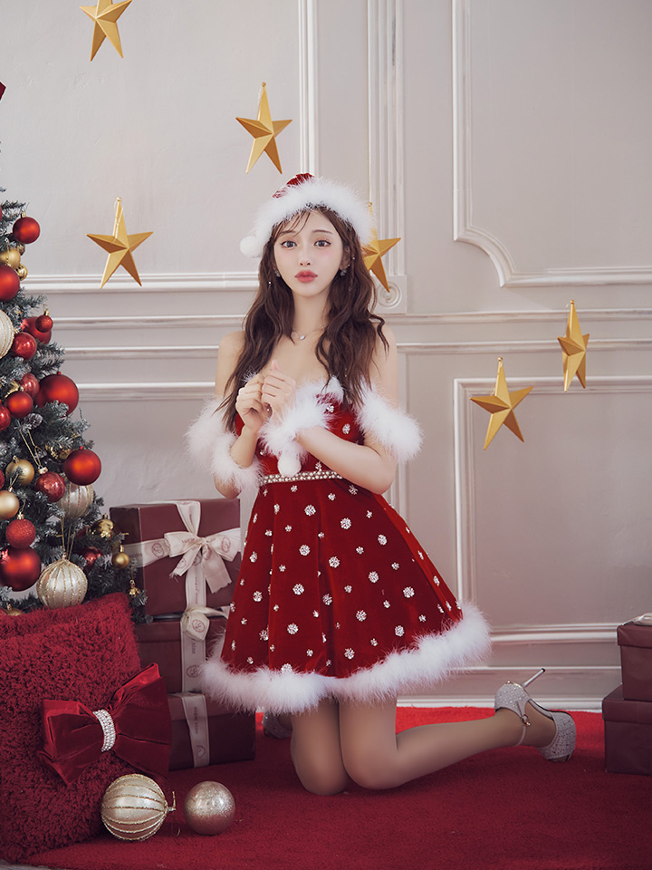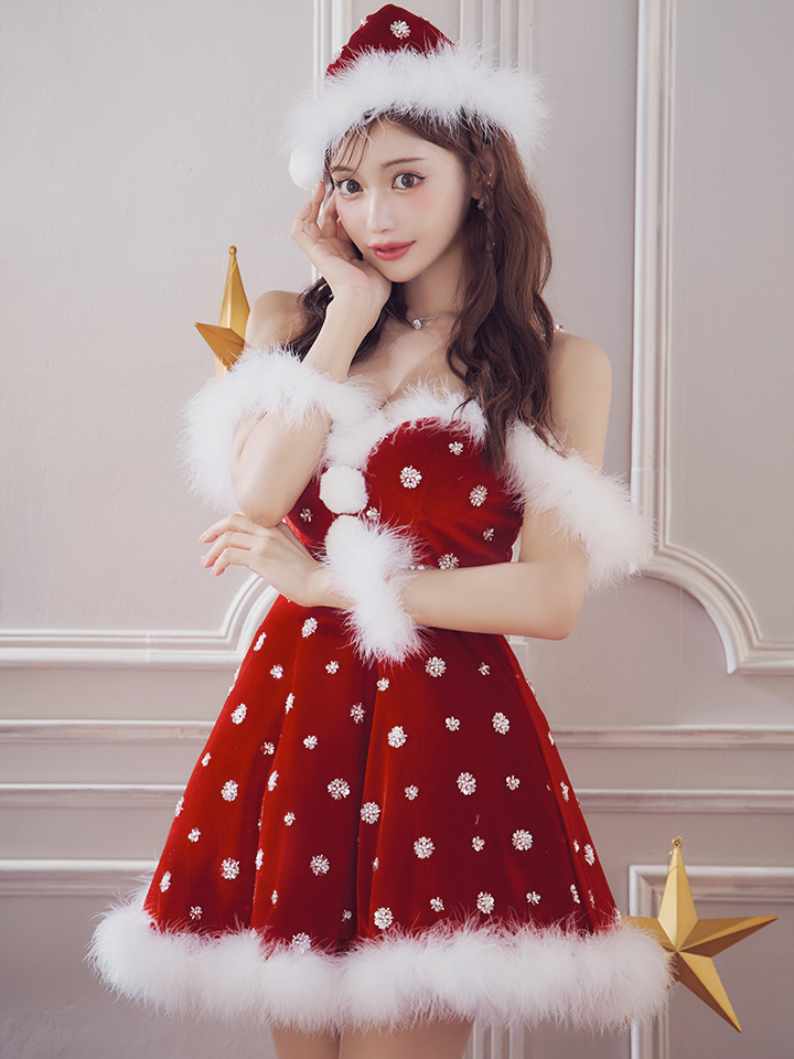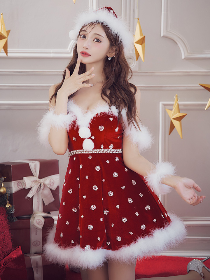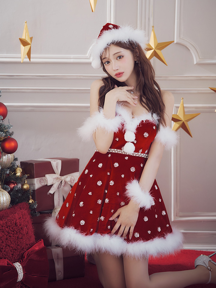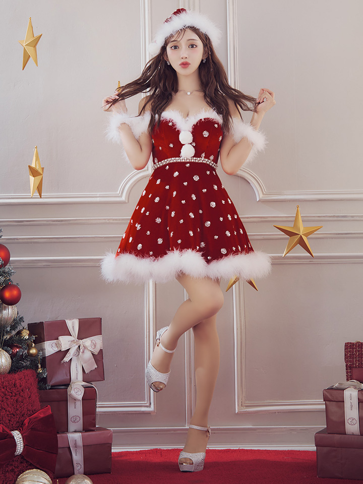 #フレア #オフショル #ビジュー #つぶつぶ #クリスマス #パーティ #サンタコス #サンタさん #ベロア