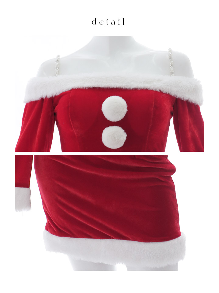 #オフショルダー #ベロア #タイト #袖あり #ロングスリーブ #ミニ #セットアップ #クリスマス #パーティ #サンタコス #サンタさん