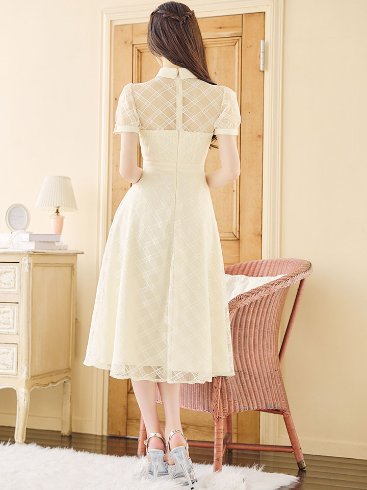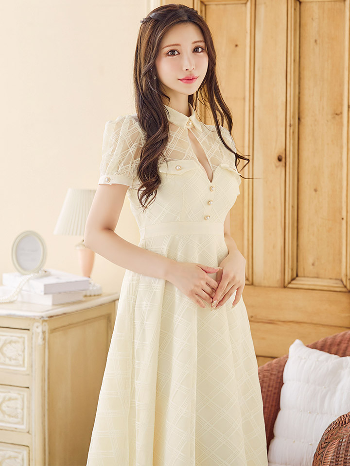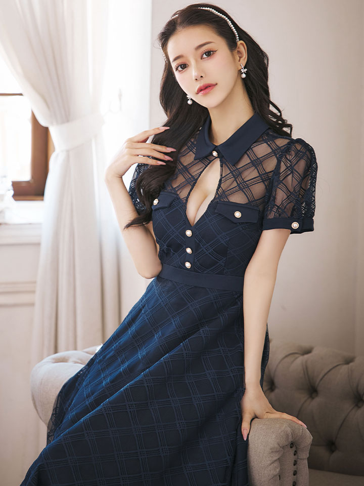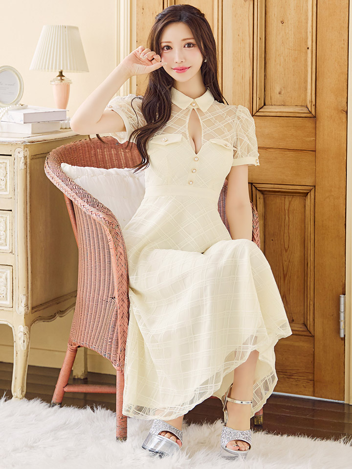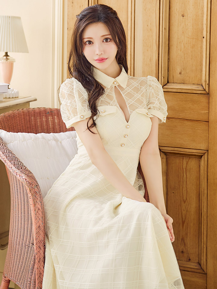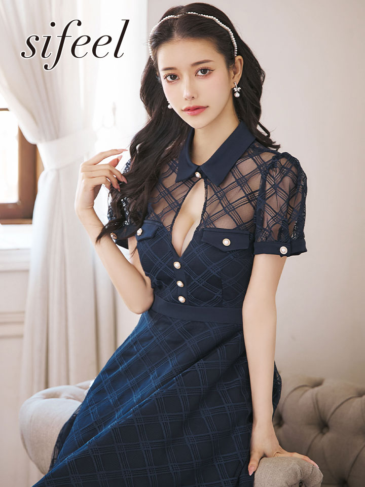 【送料無料!】【sifeel/シフィール】シースルーチュールワンピース/半袖/襟付き/パールボタン/谷間見せ/背中隠し/ミディアムドレス/キャバドレス【S-Lサイズ/2カラー】[OF03] 【YN】dzw [5243YNdzw-241224-1]