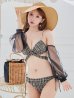 シンプルなブラックビキニに、透け感のあるシアースリーブをプラスした大人なデザイン。