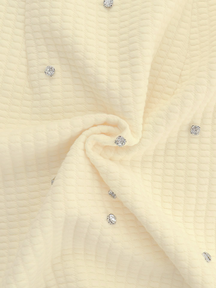 生地にちりばめられたビジューが、さりげなくも可愛いきらめきを添えてくれます。