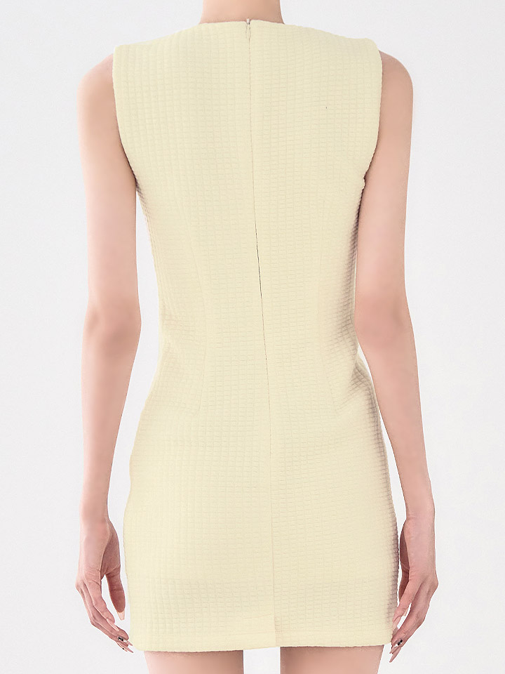 #ホワイト ##あすか着用 #ミニドレス/ミニ丈 ワッフル(ぽこぽこ) #ノースリーブ #胸元隠し(胸隠し) #背中隠し(ブラOK) #タイト #スイート・可愛い(かわいい)系