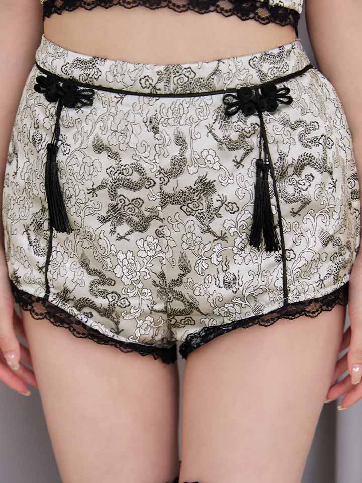 シルバー 銀 セットアップ パンツ 胸盛り 中華風 ランジェリー