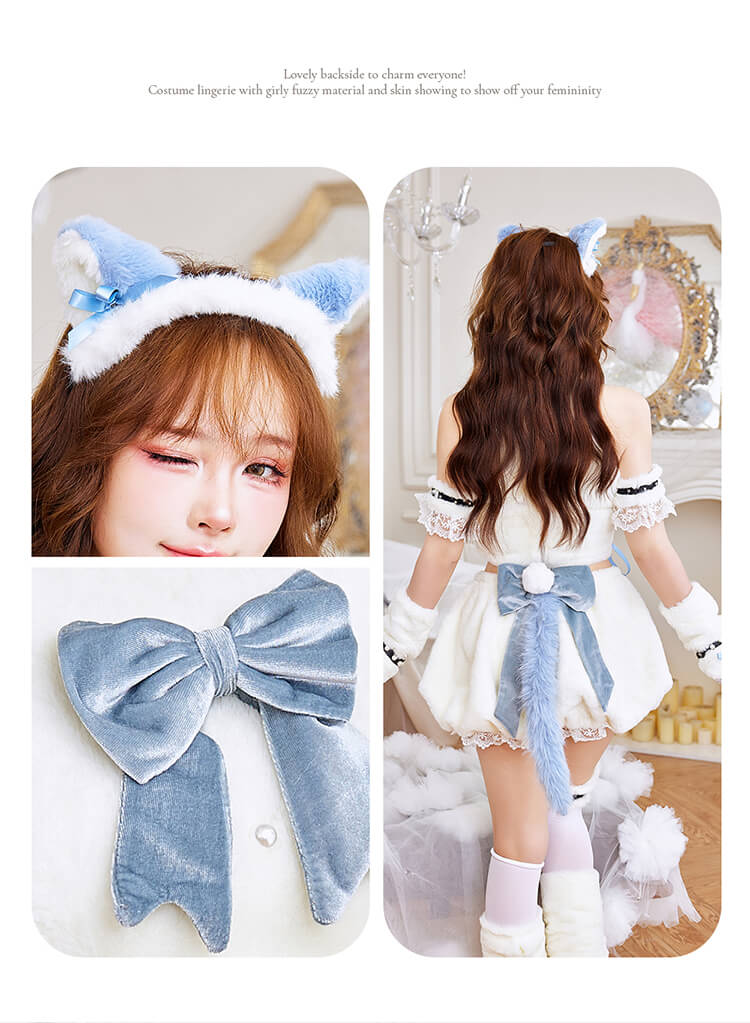 カチューシャ・首飾り・トップス・フロントリボン・アームカバー・二の腕飾り・手飾り・パンツ・レッグウォーマー・太もも飾り・ニーハイソックス・しっぽ