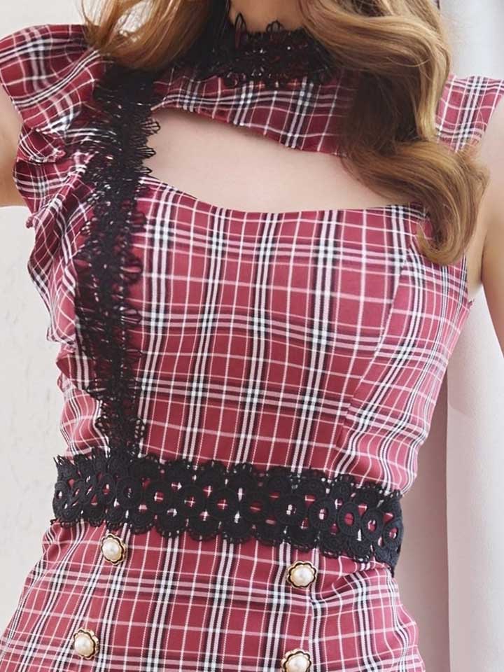 チェック柄×フリルデザインがCUTEなマーメイドミニドレス。