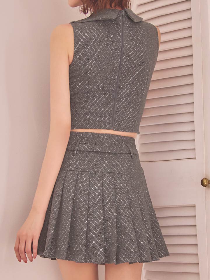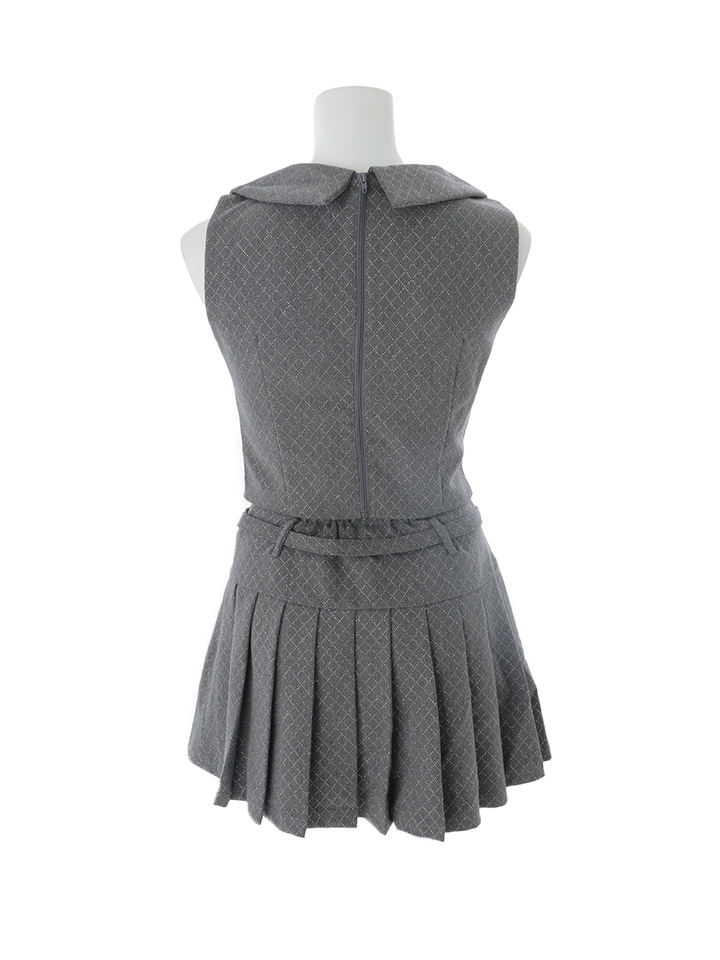 プリーツスカートが揺れるセットアップミニドレス。