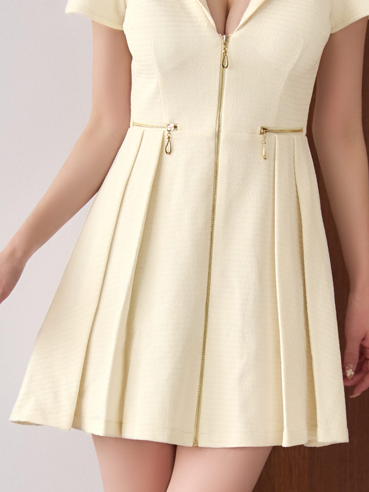 新色登場!襟付きフロントジッププリーツミニドレス/キャバドレス【XS-Lサイズ/2カラー】[OF03] 【YN】dzwAG [5763YNdzwAG-251015-1]