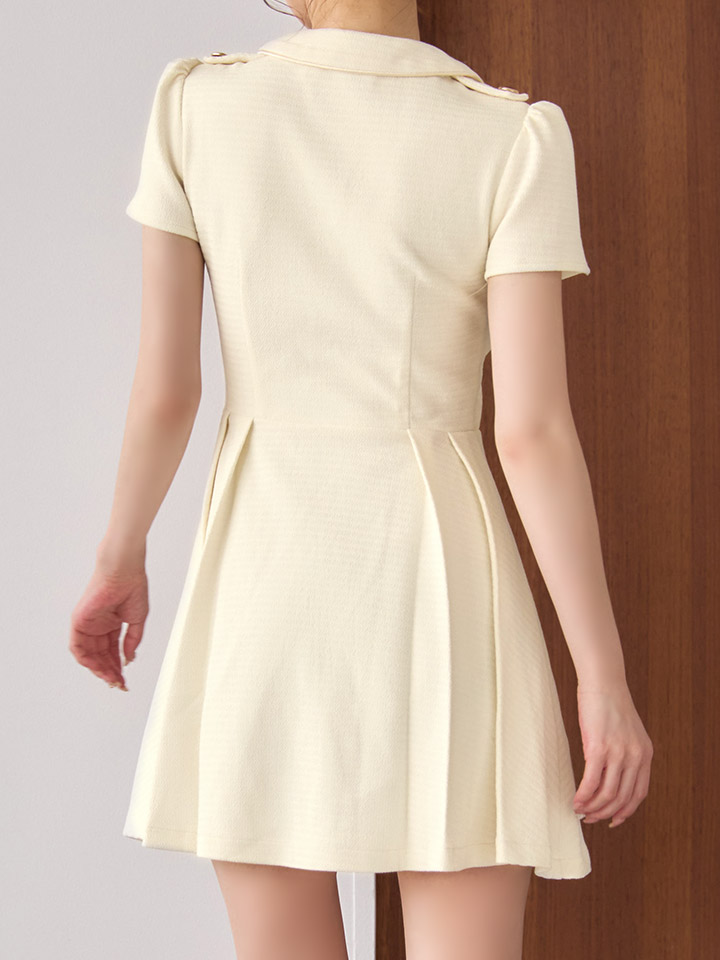 襟付きデザインがきちんと感を演出する上品なミニドレス。