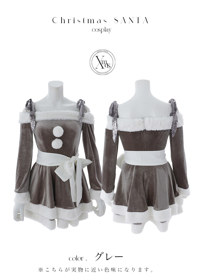 【予約 / 10月中旬発送予定】【sugar nine サンタコス 4点セット】【XS-XLサイズ/8カラー】グリッターリボン2段フレアサンタコスプレ[YMT] [SS-7150-SB-P-25RI]