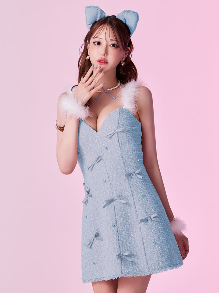ねこ キャット 猫 リボン 甘い あざと コンカフェ スイート あまい ツイード ワンピース セクシー コスプレ ピンク ブルー